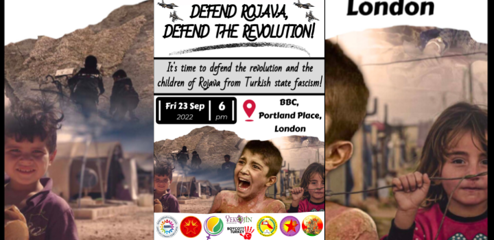 Bu temelde “Rojava devrimini ve özgürlük hareketimizi koru!” şiarıyla seferberlik çağrısı kapsamında gerçekleştireceğimiz merkezi eylemde başta Britanya, Avrupa devletleri ve uluslararası örgütlerin AKP-MHP faşizmine tuttuğu yeşil ışığı kınamak, TC faşizmini teşhir etmek ve Kürdistan’da her saniye mücadele veren hareketimizi selamlamak adıyla Cuma 23 Eylül, saat 18:00’da BBC binası önünden alanlara akmaya bütün halkımızı ve dostlarımızı çağrıyoruz.