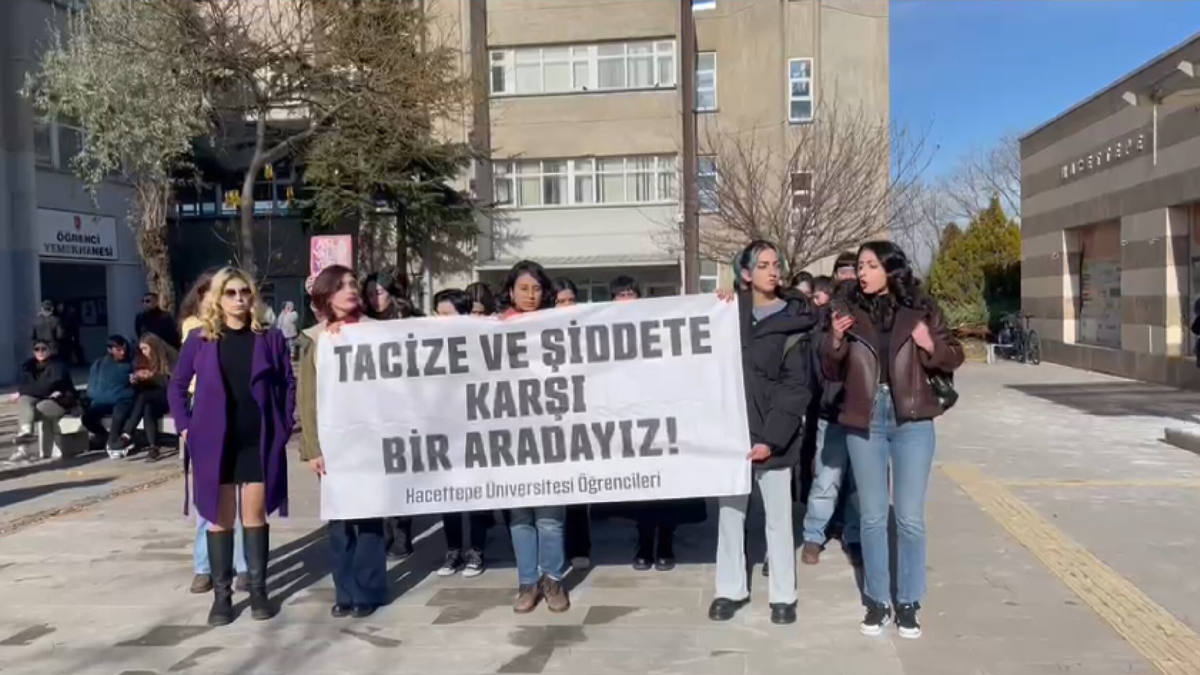 Biz, Hacettepe Üniversitesinde tacize ve şiddete karşı tüm üniversite bileşenlerini harekete geçmeye ve bu sorunlara gerçekçi, kalıcı çözümler üretmeye davet ediyoruz. Bu okulda tacize uğrayan, şiddete maruz kalan hiçbir kadın,  yalnız değildir. Ataerkiye, tacize ve erkek şiddetine bir son verene kadar, kampüsümüzü güvenli ve özgür bir hale getirene kadar mücadele etmeye devam edeceğiz.