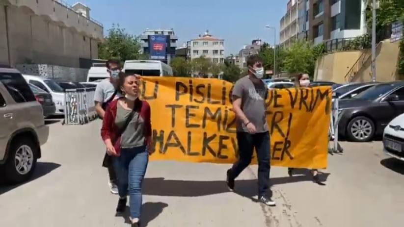 ANKARA – Halkevleri üyeleri, İçişleri Bakanı Süleyman Soylu’nun dün katıldığı bir TV programında sarf ettiği sözlere ilişkin AKP Ankara İl Başkanlığı binası önünde protesto eylemi gerçekleştirmek istedi. “Bu pisliği devrim temizler” pankartını taşıyan eylemciler, “AKP’den hesap sormaya geldik. Devlet mafya ve sermayenin kaynaştığı kontgerillacı devletten hesap sormaya geldik” dedi.