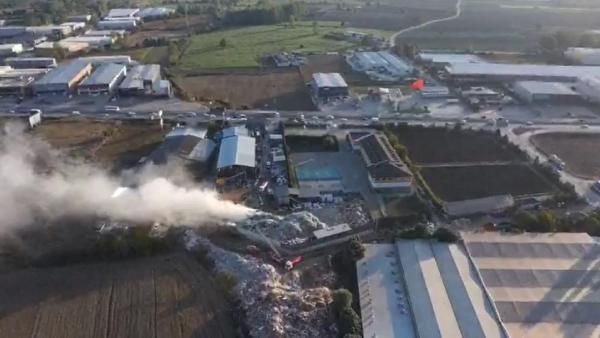 BURSA – Bursa’nın İnegöl ilçesinde Bursa yolu üzerinde faaliyet gösteren geri dönüşüm fabrikasında bilinmeyen nedenle yangın çıktı. Fabrikanın büyük bir bölümü küle dönerken, havadan çekilen görüntülerde yangından kaynaklı dumanların gökyüzünü kapladığı görülüyor.