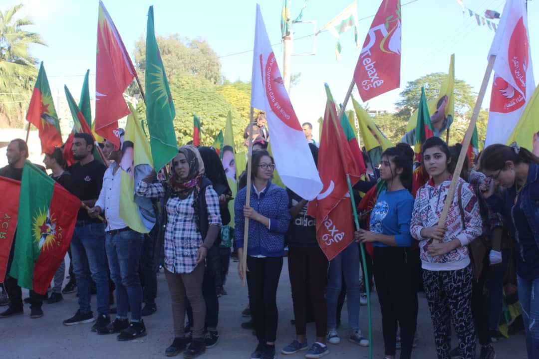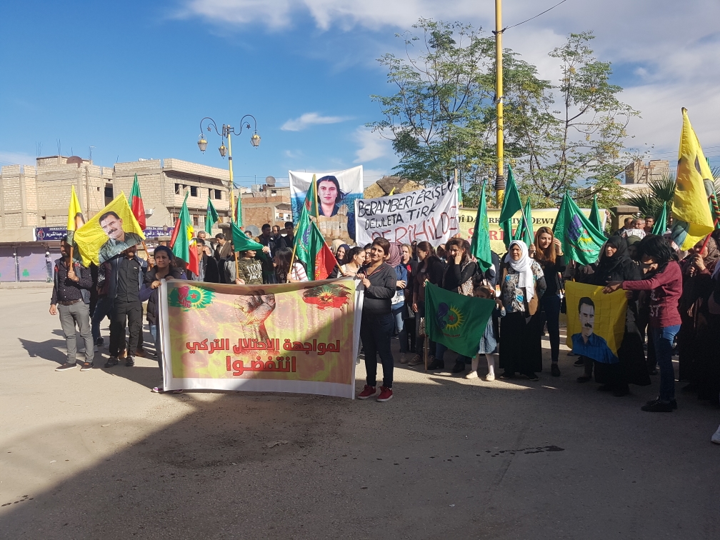Saat 13:00’da Cizire Bölgesi’nin Hesekê, Til Temir, Serêkaniye, Dirbêsiye, Amûdê, Qamişlo, Tirbespiye, Çil Axa, Rimêlan, Girkê Legê ve Dêrik kentlerinde Gençlik alanlarda, işgalci Türk devletinin Kobanê ve Girê Spî saldırılarını kınıyor.