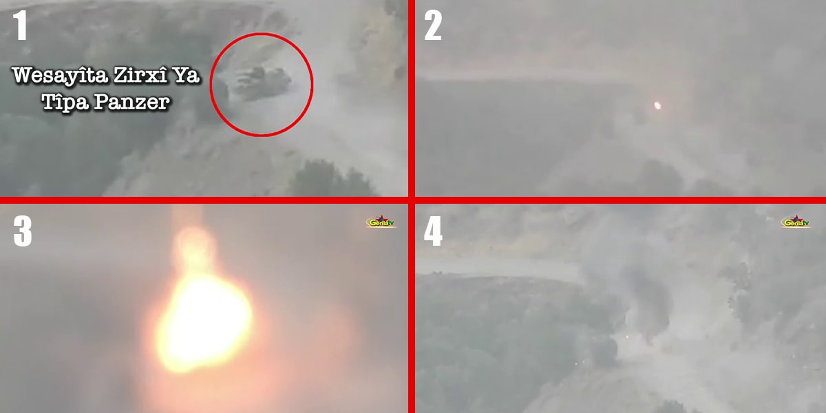“9 Ağustos saat 19:00’da Kunîşka’dan Çemço Direniş Alanı’na doğru ilerlemek isteyen Panzer tipi 1 zırhlı araç, hareketli timlerimizce denetim altına alınarak ağır silahlarla hedeflenmiştir. Güçlerimizin etkili vuruşları sonucunda; hedeflenen zırhlı araç imha edilmiş, 7 işgalci cezalandırılmış ve 1 işgalci yaralanmıştır. Eylemin ardından işgalciler kayıplarını Skorsky helikopterlerle alandan uzaklaştırabilmişlerdir.”