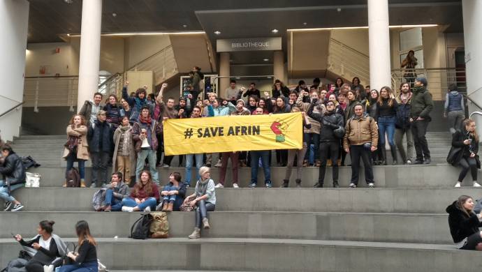 Cenevre Üniversitesi öğrencileri, işgalci Türk devleti ve çetelerinin Efrin’e yönelik saldırılarını protesto etti.