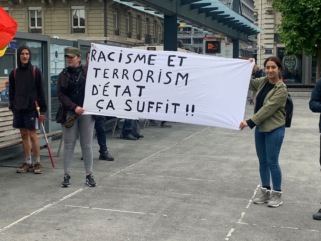 Aktivistler, akşam saatlerinde Bel-Air meydanında bir araya geldi. “İrkcılığı ve devlet terörünü durduralım!” yazılı pankartı ve ırkçı saldırılar sonucunda katledilenlerin resimlerini taşıyan gençler, ırkçılığı ve faşizmi kınayan sloganlar attı. Eylemde ırkçı saldırıları, devlet terörünü ve polis şiddetini teşhir eden bildiriler dağıtıldı.