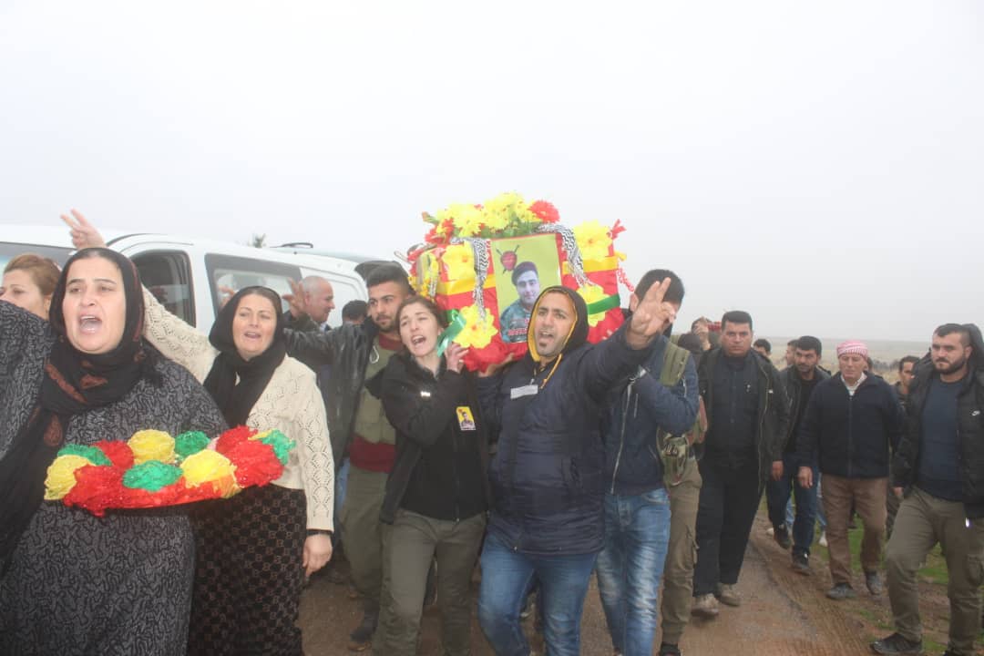 DIRBÊSIYÊ– İşgalci Türk devleti ve çetelerinin Zirgan’a yönelik saldırılarına karşı Cenga Rojava Direnişi’nde şehit düşen Askeri Disiplin Güçleri Üyesi Reşad Ali’nin (Bahoz Dirbêsiyê) cenazesi, yüzlerce yurttaş tarafından Dirbêsiyê Şehit Aileleri Meclisi’nden alındı.