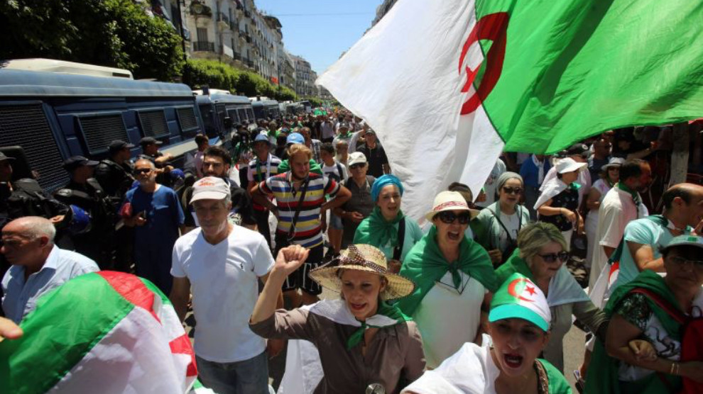 Kısa bir süre önce, 30 dolayında eylemci, Amazig (berberi halkı) bayrağını açtıkları için tutuklandı. Genelkurmay Başkanı Ahmed Gaid Salih, bu bayrağın taşınmasını yasaklamıştı.