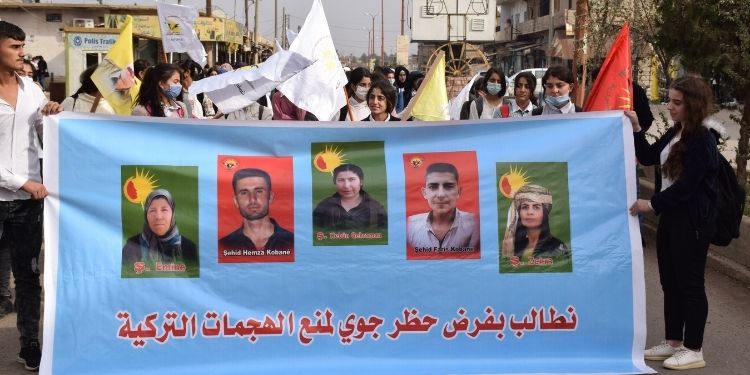 İlçe eğitim merkezi önünde başlayan yürüyüş ilçe merkezinin ana caddelerinde devam etti. Yürüyüşte “Türk devletinin saldırılarına karşı hava sahasını kapatın” pankartı taşınarak, Türk devletini kınayan sloganlar atıldı.