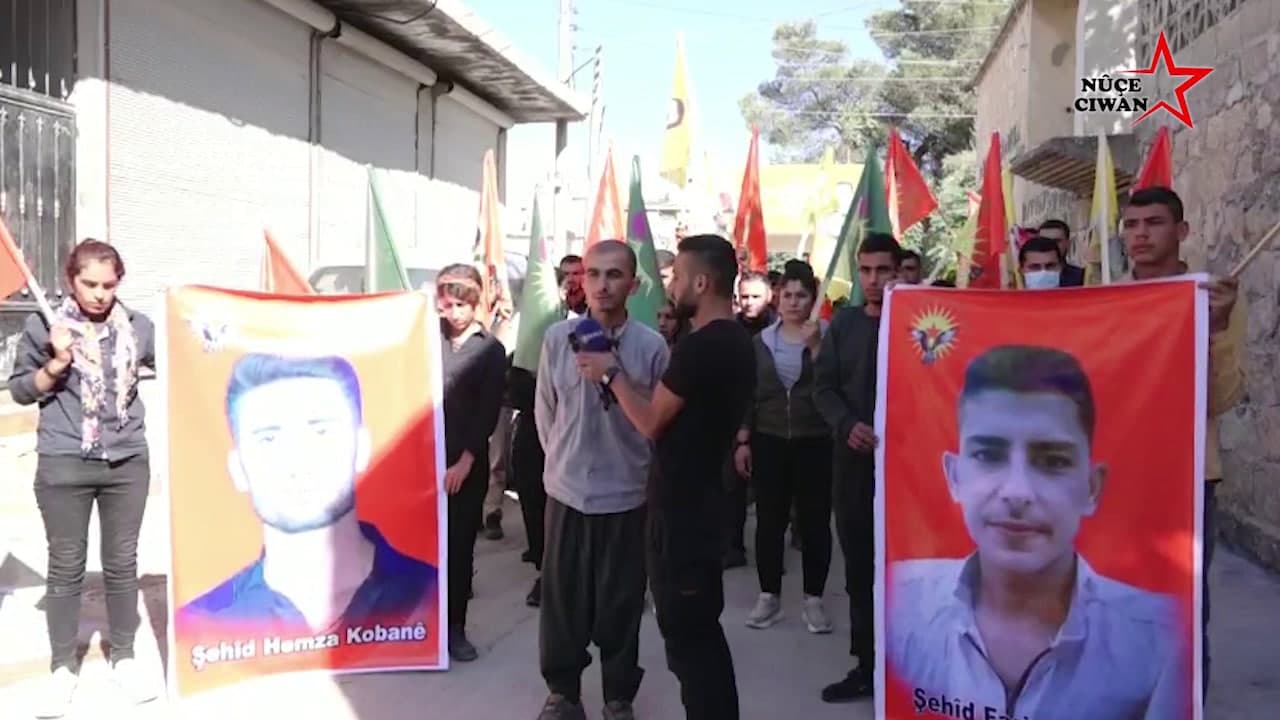Onlarca gencin katıldığı açıklama Kobanê’deki Tevgera Ciwanên Şoreşger binası önünde yapıldı. Gençler Şehit Hemze ve Şehit Faris’ın fotoğraflarını kaldırdı.