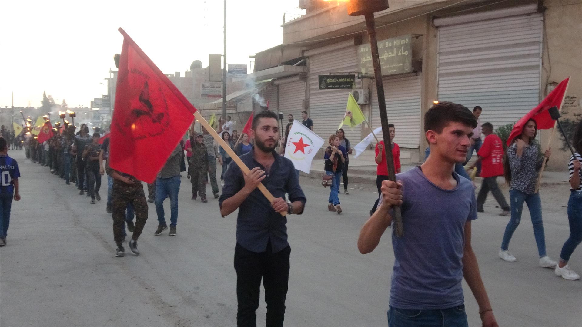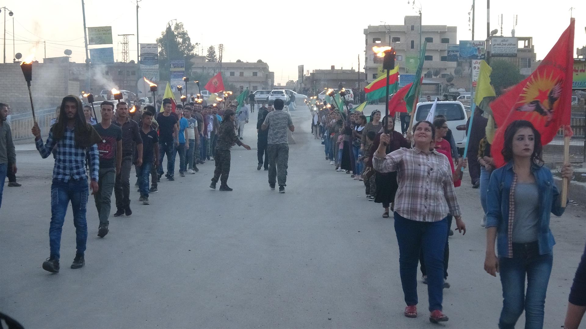 Mifît köprüsünden başlayan yürüyüşte gençler, Suriye Devrimci Gençlik hareketi, PYD, YPG ve YPJ bayraklarını taşıdı. İşgal karşıtı sloganlar ile devam eden yürüyüş, Kültür ve Sanat Merkezi önünde mitinge dönüştü.