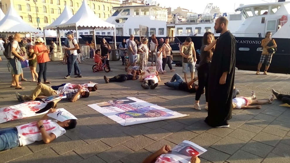 Fransa’nın Marsilya kentinde bir araya gelen Tevgera Ciwanên Şoreşger üyesi gençler Vieux Port Meydanı’nda bir eylem düzenledi. Gençler işgalci Türk devletinin katliamına dikkat çekmek amacıyla kanlı yelekler giydi. Katliamın fotoğraflarını da taşıyan gençler uzun bir süre sessiz bir şekilde eylem yapUçak ve bombardıman sesi çıkaran gençler katliama dikkat çekti.