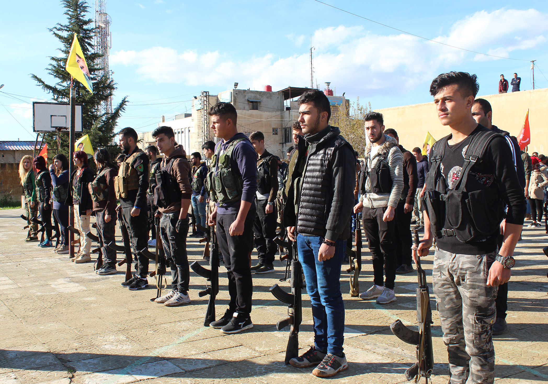 DIRBÊSIYÊ – Ciwanên Şoreşger ve HPC-Gençlik, işgalci Türk devletinin işgal saldırılarına karşı basın açıklaması düzenledi. Ciwanên Şoreşger üyeleri ve Toplum Savunma Güçleri-Gençlik Dirbêsiyê şehrinde düzenledikleri askeri bir tören ile işgalci Türk devletinin işgal saldırılarına karşı tutumlarını belirledi.