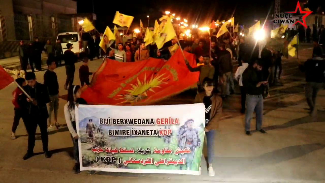 Kobanê Tevgera Ciwanên Şoreşger ve Yekîtiya Jinên Ciwan KDP ihanetine karşı meşaleli yürüyüş gerçekleştirdi. Kobanê’de buluna 19 Temmuz Parkı’nda başlayan yürüyüş Şehid Egîd alanın da sona erdi.