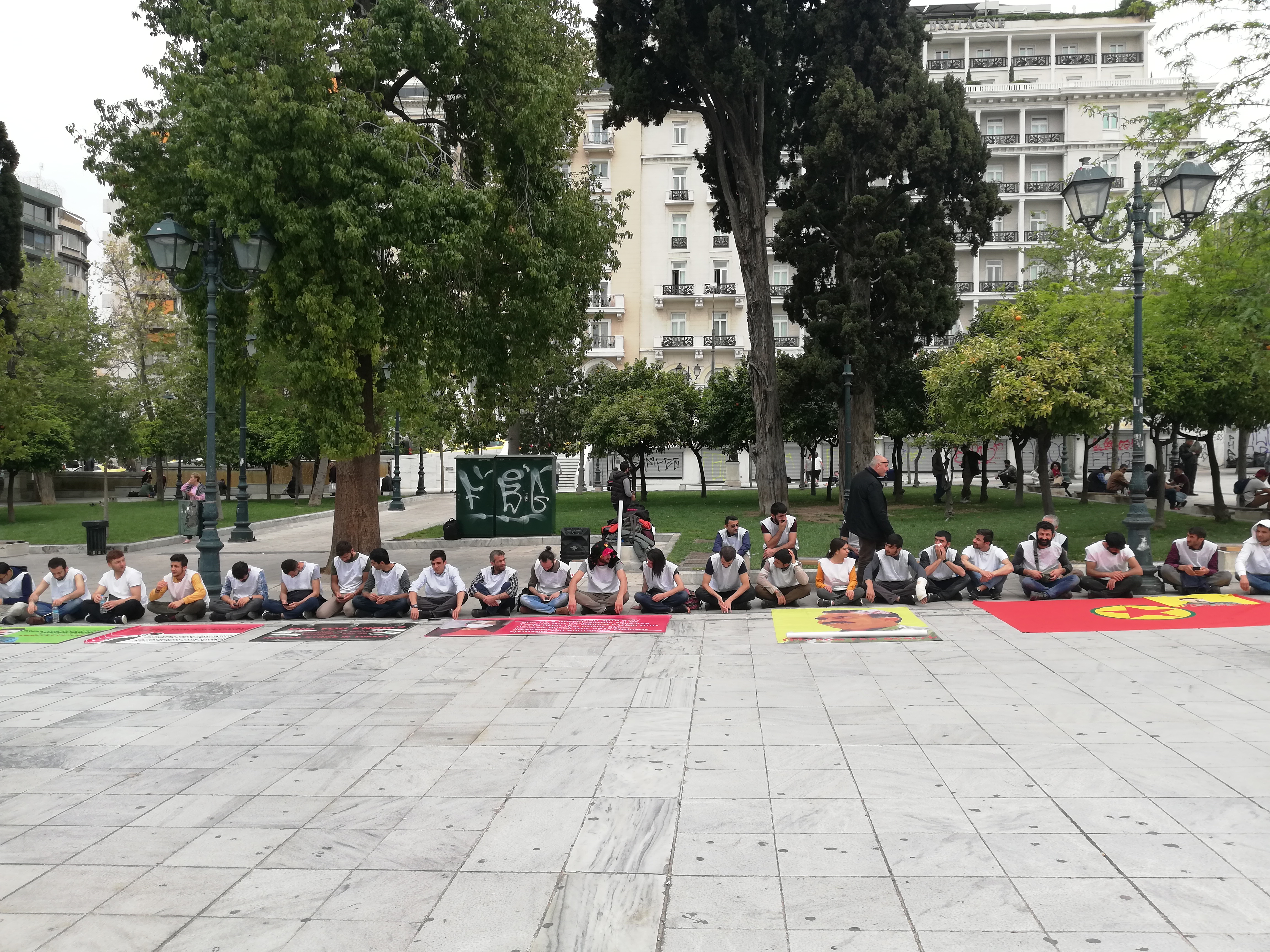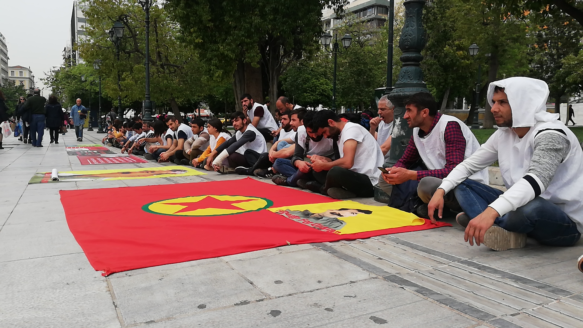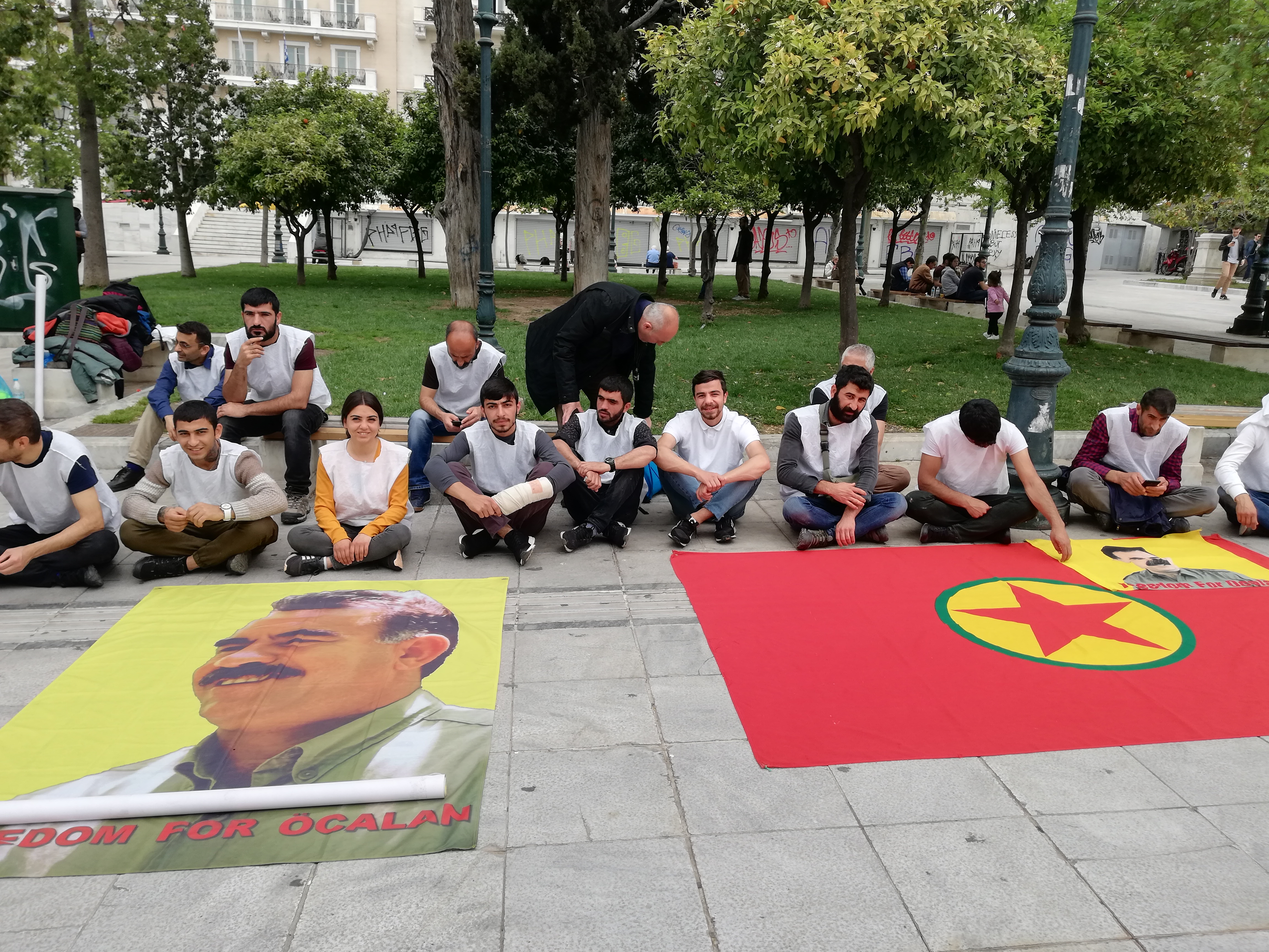 Beyaz yelekler giyen gençler, Avrupa, Kürdistan ve dünyada binlerce kişinin tecridin son bulması amacıyla grevde olduğunu hatırlattı. Sintagma Meydanı’ndaki eyleme Türkiyeli sol örgütler de katıldı.