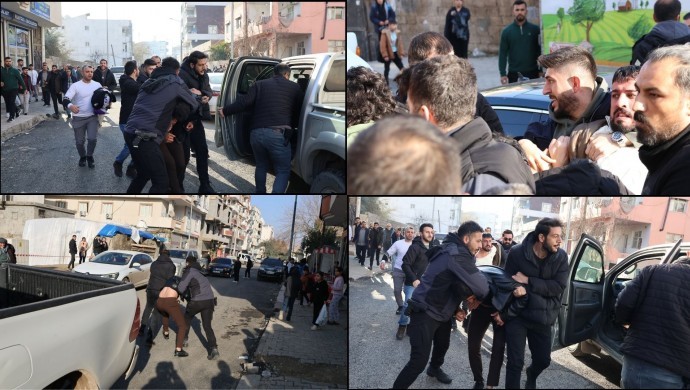 “Rojava vicdandır, özgürlüktür, direniştir, teslim alınamaz” pankartı ve “Bijî berxwedana Rojava”, “Rojava rûmeta meyê” ve “Rojava Rojhilata Kurdistan yek welat e” sloganları eşliğinde yürüyen gençlere polis saldırdı. Demokratik kitle örgütü temsilcileri ve siyasi parti temsilcilerinin içinde olduğu kitleye saldıran polisler, en az 3 genci işkence ederek gözaltına aldı. Özgür Basın çalışanlarının çekim yapmasını engelleyen polisler, gazetecileri de hedef alarak saldırdı. Basın çalışanlarına sinkaflı küfür eden polis, gazetecileri gözaltına almakla ve ölümle tehdit etti. Kitle saldırıya “Bijî berxwedana Rojava” sloganları ile karşılık verdi. Kitle engellemeye rağmen, yürüyüşünü sokaklarda sürdürdü.