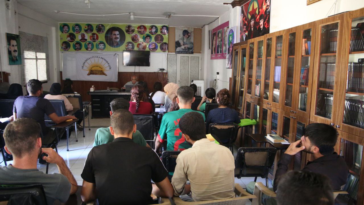 DÊRİK – Cizre Kantonu Devrimci Gençlik Hareketi üyeleri, Önder APO’nun “Barış ve Demokratik Toplum Manifestosu”nu okumak için bir araya geldi. Kantonun farklı şehirlerinden gelen 40 genç, Dêrik’teki Demokratik Toplum Akademisi’nde düzenlenen okuma devresine katıldı.