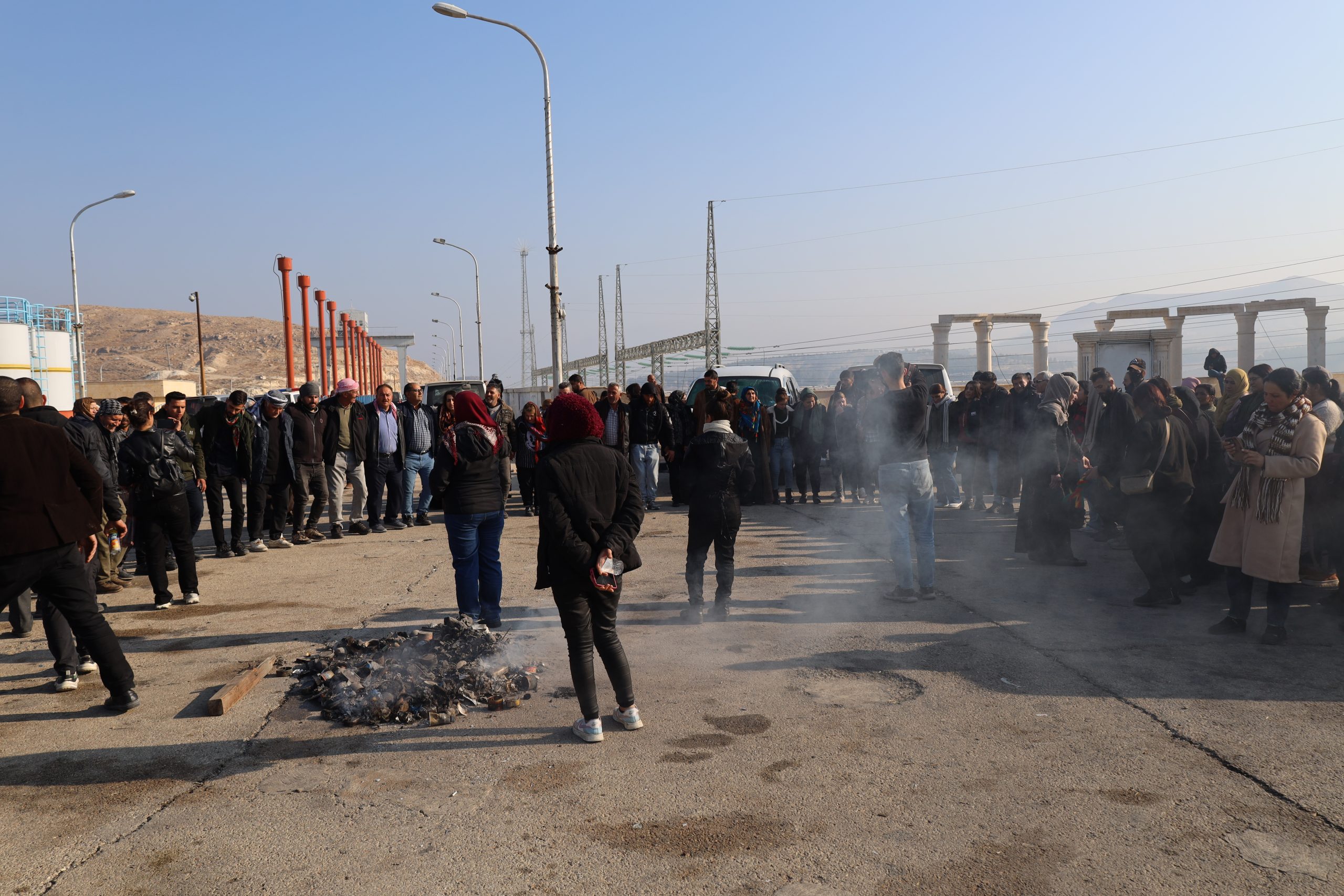 TİŞRİN – Kuzey ve Doğu Suriye halkı, QSD savaşçılarının direnişine destek olmak ve Tişrîn Barajı’nı Türk devletinin saldırılarından korumak amacıyla canlı kalkan olarak nöbet tutmaya başladı. Bölgenin en büyük su ve elektrik kaynağı olan Tişrin Barajı, Türkiye’nin hava saldırıları nedeniyle yok olma tehlikesi altında.