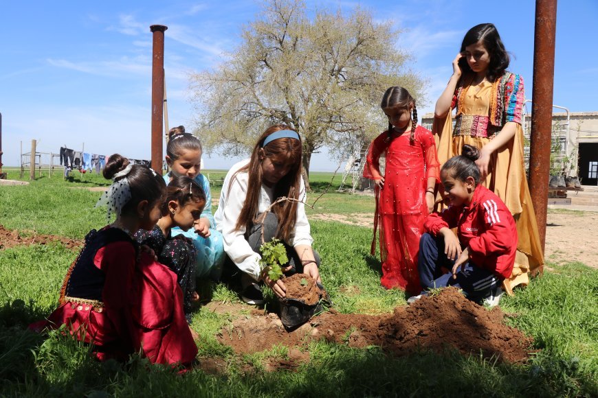 HABER MERKEZİ- Kuzey ve Doğu Suriye Stêrk Çocuk Hakları Koruma ve İzleme Örgütü, Önder APO’nun doğum günü olan 4 Nisan etkinlikleri kapsamında çocukların doğayı sevmesi ve ağaç ekme kültürünü yaygınlaştırmak amaçlı Cizre Kantonu’nun Qamışlo kentine bağlı Şidê köyünde güç ve meyve türünden 100 fidan dikti.