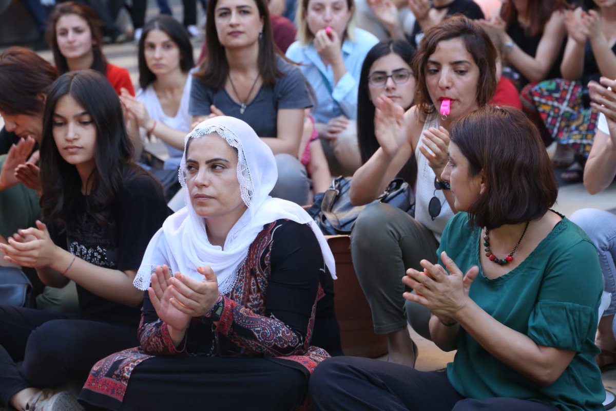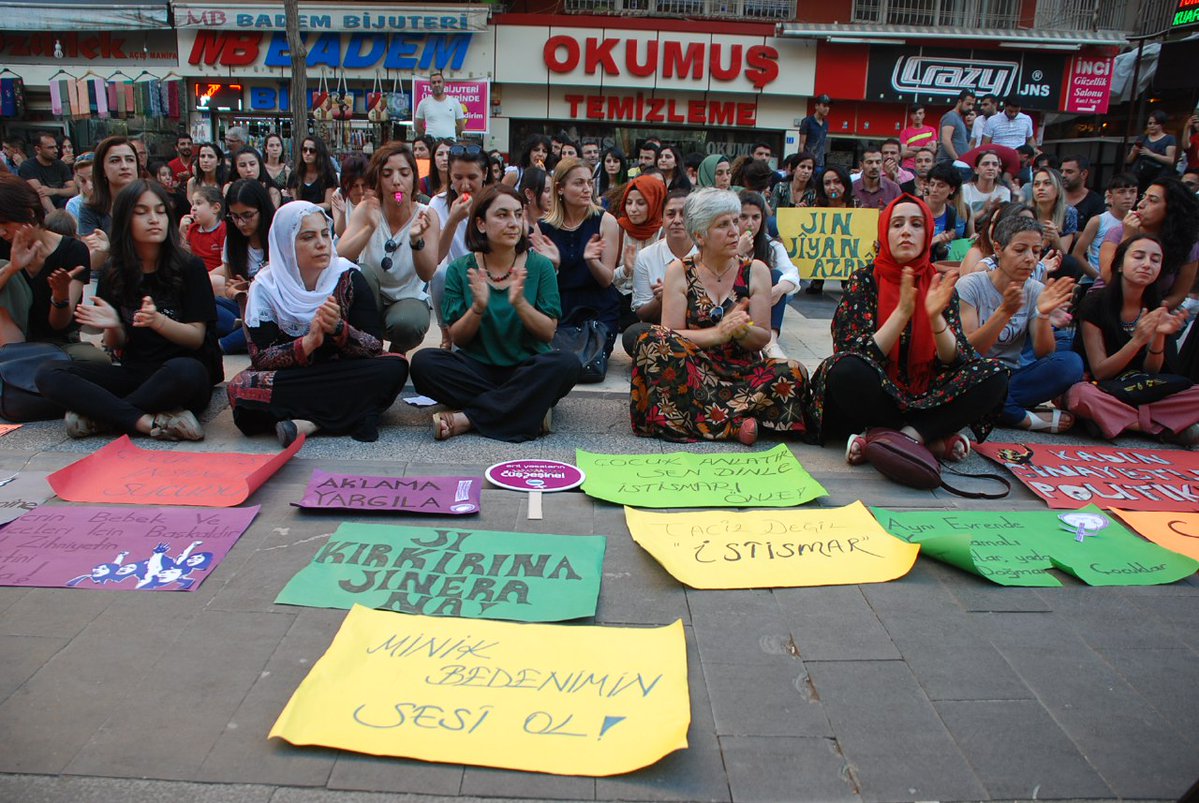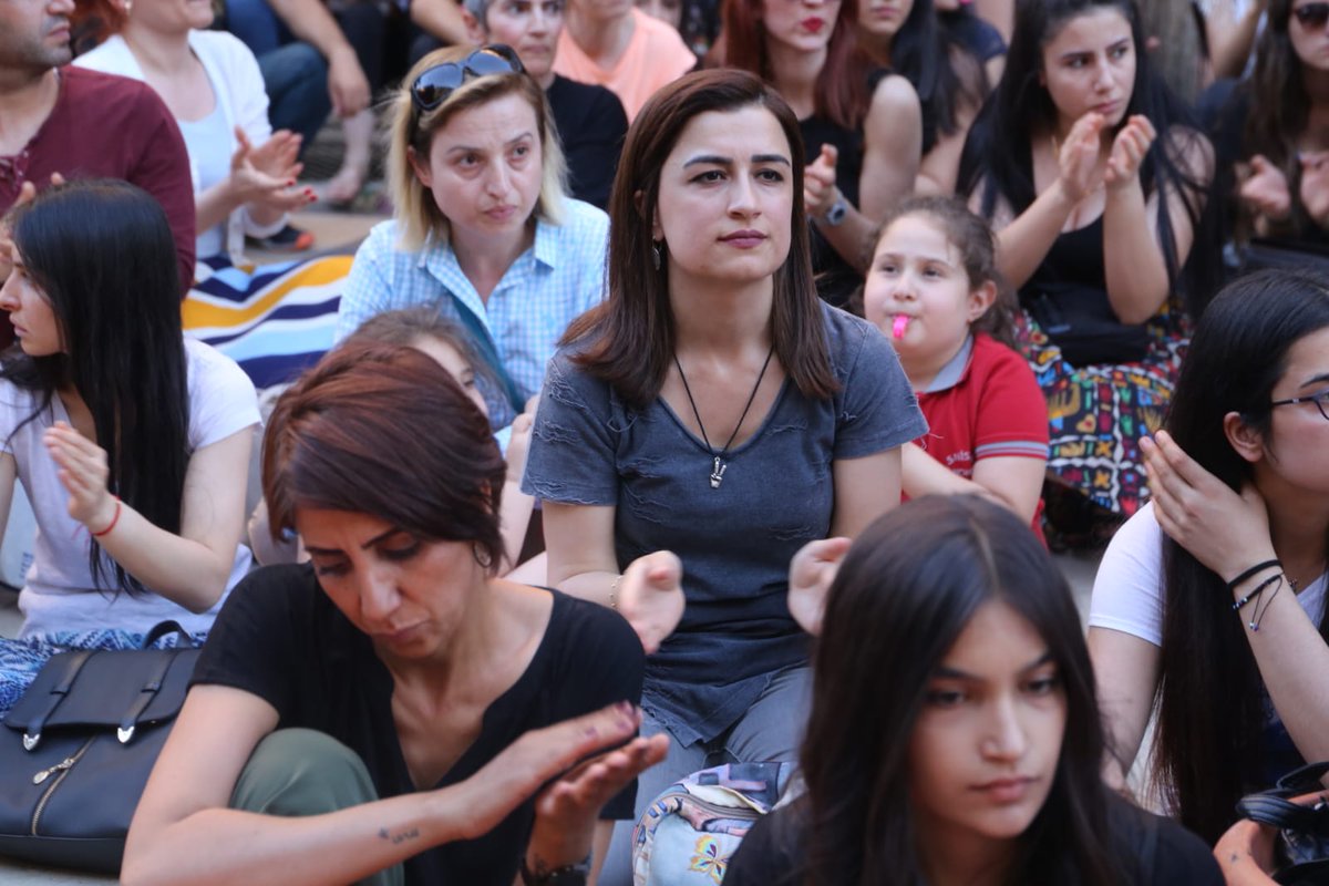 Basın açıklaması ardından kadınlar oturma eylemi gerçekleştirdi. Oturma eyleminde kadınlar zılgıt ve alkışlarla ses çıkardı. Eylem oturma eylemi ardından son buldu.