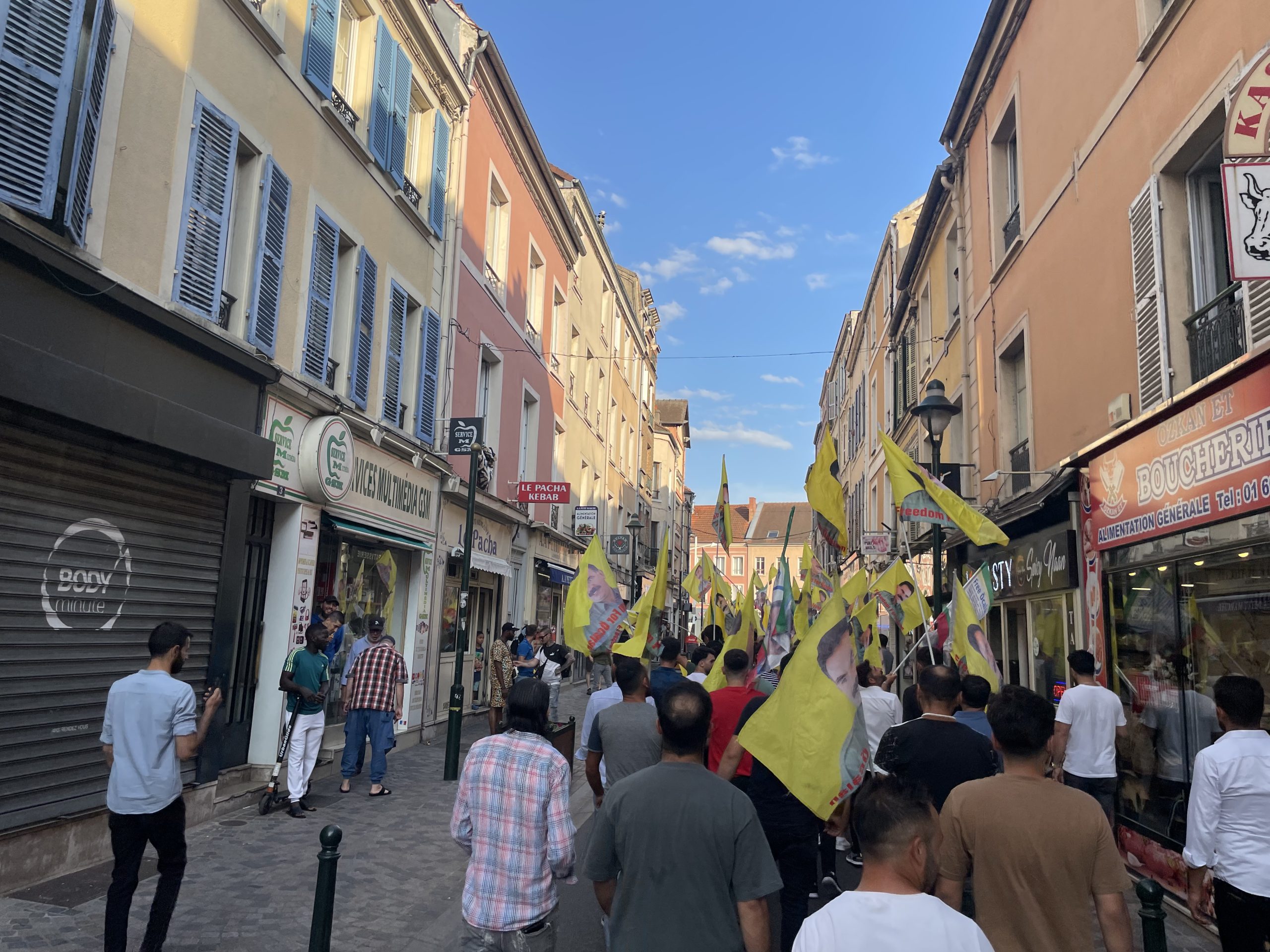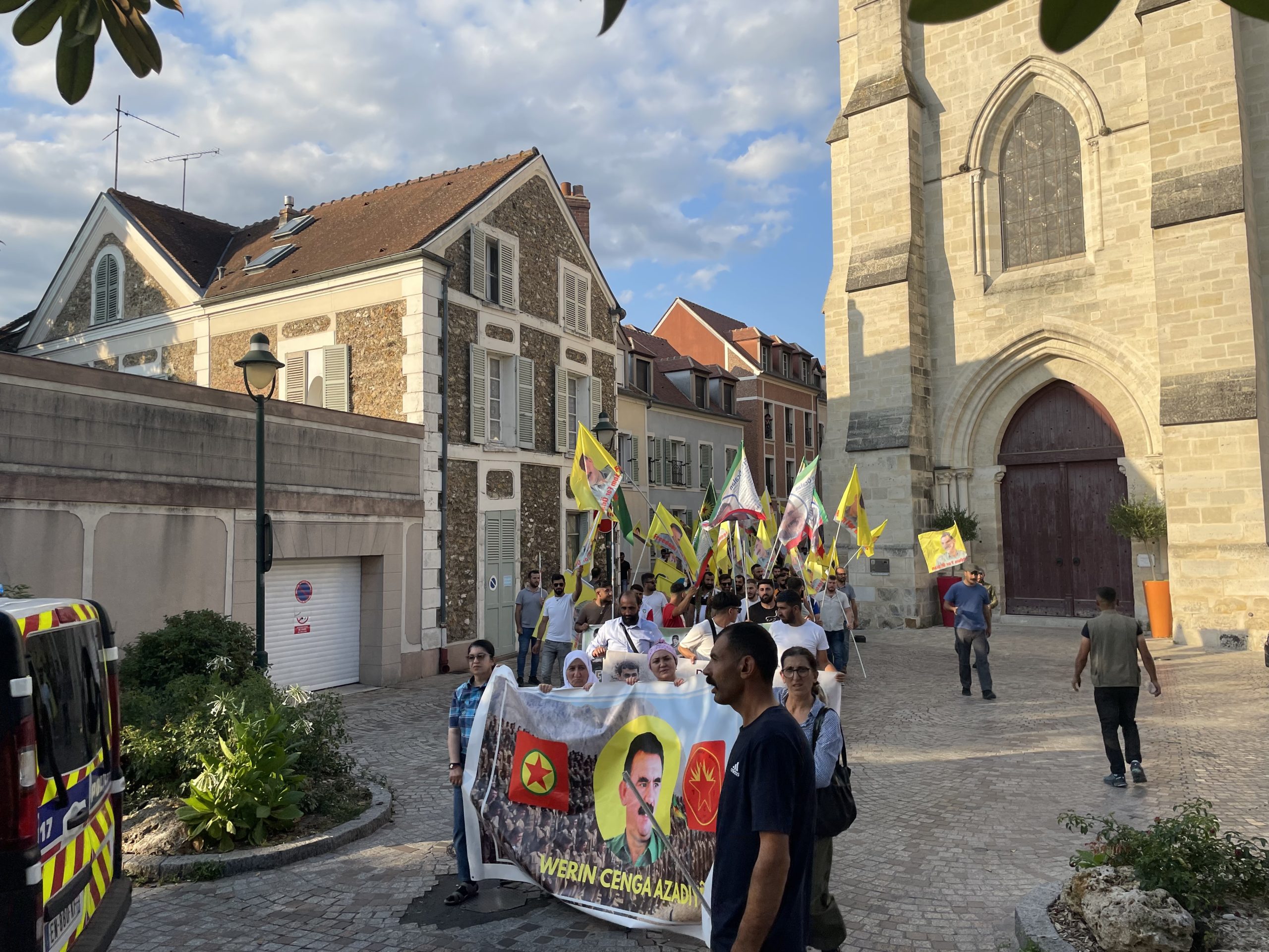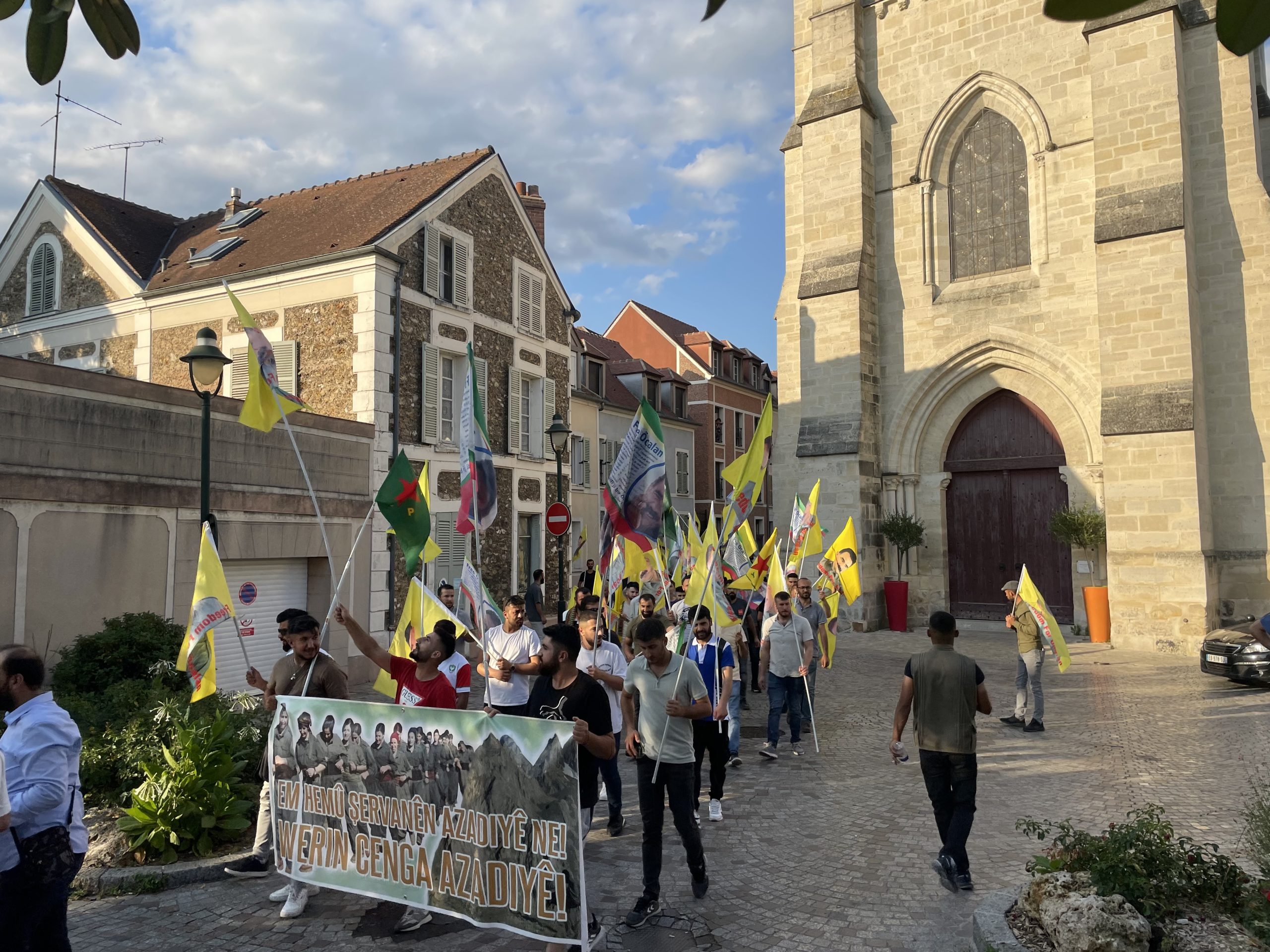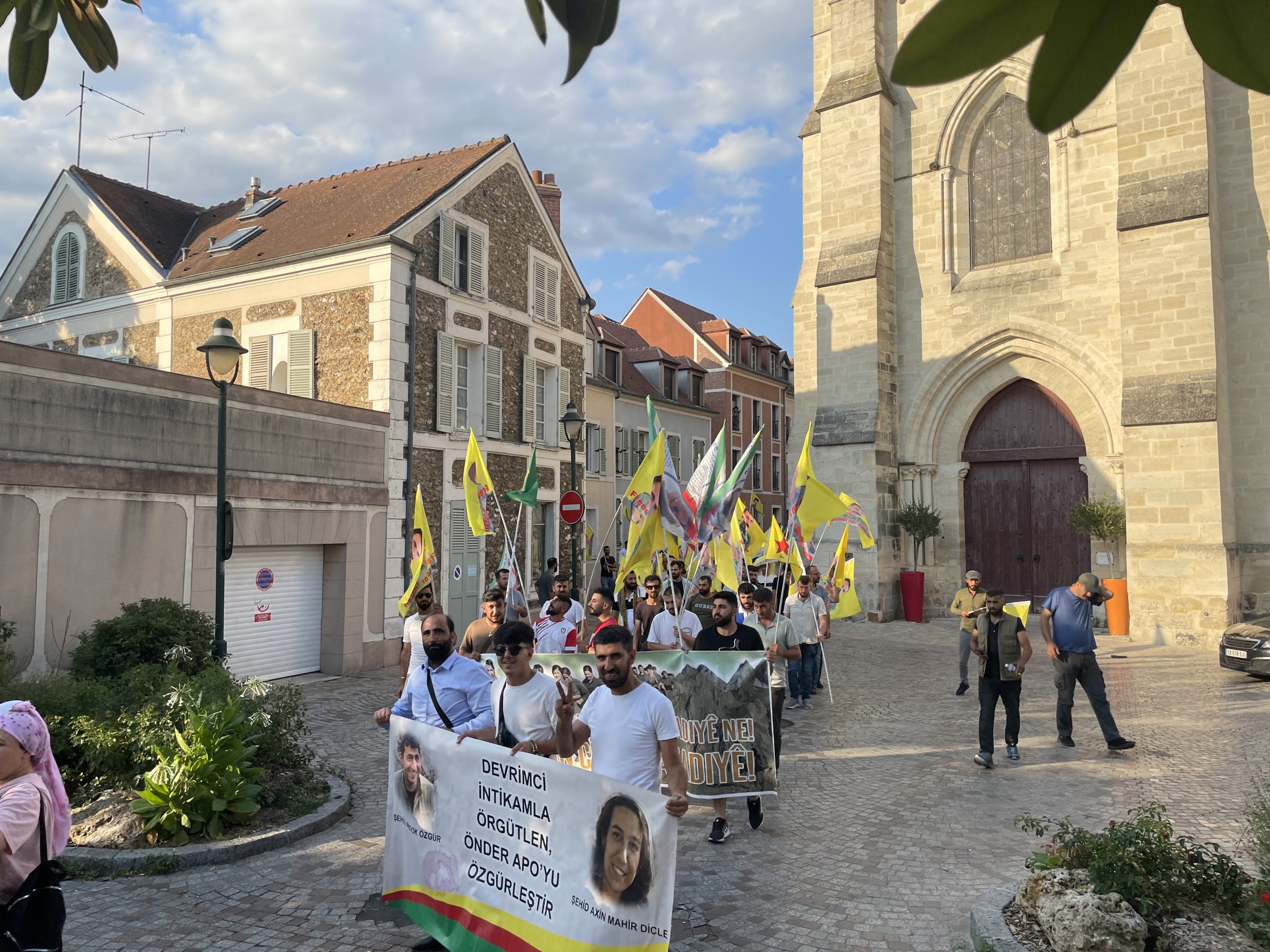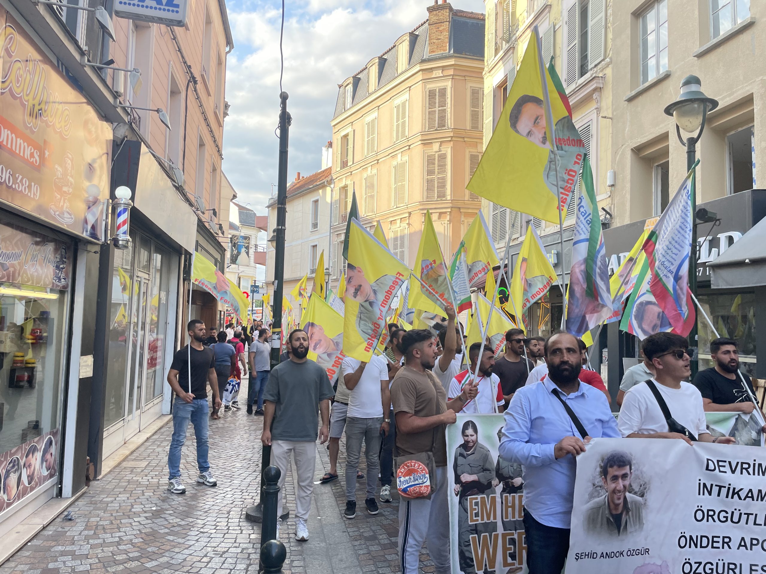 CORBEIL – Fransa’nın başkenti Paris’e bağlı Corbeil banliyösünde belediye binası önünde bir araya gelen Tevgera Ciwanên Şoreşger (TCŞ) ve Jinên Ciwan ên Tekoşer (TekoJIN) üyeleri öncülüğünde, Halklar Önderi Abdullah Öcalan’ın fiziki özgürlüğü için “Cenga Azadiyê Serbixînin” hamlesi kapsamında yürüyüş gerçekleştirdi.