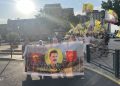 Önder APO’nun posterleri ve PKK flamaları ile merkezi tren istasyonuna doğru yürüyüşe geçen gençler, burada Kurdistan Devrim Şehitleri için bir dakikalık saygı duruşunda bulundu.