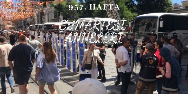 Gözaltında kaybedilen yakınlarının akıbetini sormak ve faillerin yargılanması talebiyle her hafta Galatasaray Meydanı’na toplanan Cumartesi Anneleri/İnsanları, eylemlerinin 957’ncisini gerçekleştirdi. Karanfillerle Galatasaray Meydanı’na yürümek isteyen Cumartesi Anneleri/İnsanları, Beyoğlu Kaymakamlığı’nın “yasak” kararı gerekçe gösterilerek engellendi. Polisin engellemesine rağmen Cumartesi Anneleri ve hak savunucularının bekleyişi sürüyor.