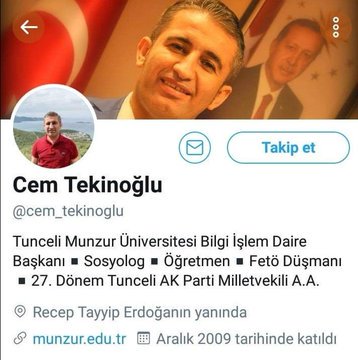 Sosyal medya hesabından kadınlara yönelik attığı mesajlar ve söylemlerle cinsel istismarda bulunan, Cem Tekinoğlu Dersim Ovacıklıdır. Munzur Üniversitesinde Bilgi İşler Başkanlığı yapmaktadır. Aynı zamanda 27.Dönem işgalci Akp Dersim Milletvekili aday adayıdır.