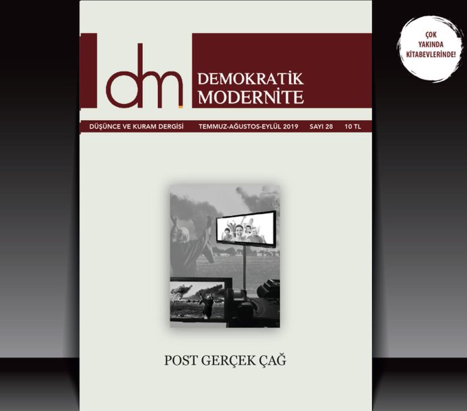 HABER MERKEZİ – Düşünce ve kuram dergisi olan Demokratik Modernite Dergisi’nin yeni sayısı çıktı. Temmuz, Ağustos, Eylül aylarını kapsayan 28’inci sayı Lilav, Mepisto, Kırmızı Kedi, İmge ve tüm seçkin kitapevlerinde yerini almaya baladı. Bu sayıda “Post Gerçek Çağ” başlığı tartışmaya açıldı.