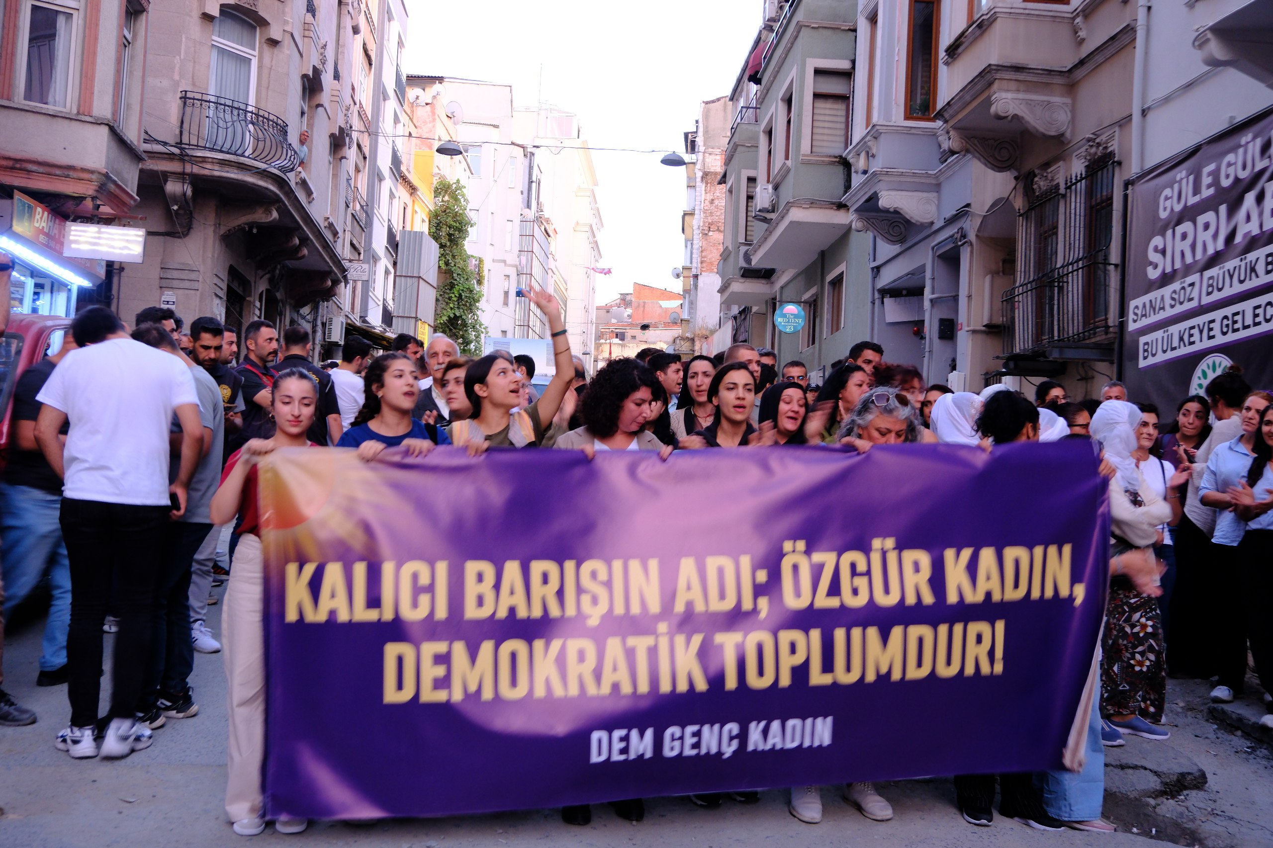 Açıklamayı yapan DEM  Parti Genç Kadın Meclis üyesi Ayşegül Sakallı, “1 Eylül’de barış konuşmak suç, barış şöleni yasak. Çünkü bu düzen savaşla, yasakla, erkek egemenlikle zorla ayakta duruyor. Ama  biz genç kadınlar hem özgürlüğü hem barışı sahipleniyoruz. Korkmuyoruz, susmuyoruz. Barışı da biz kuracağız, yaşamı da biz değiştireceğiz” dedi.