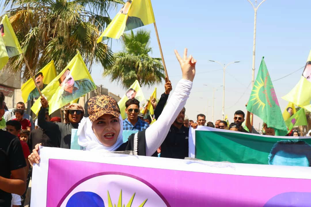 HABER MERKEZİ- Dêrazor ve Tebqa’da düzenlenen yürüyüşlerde mutlak tecrit altındaki Rêber APO’nun özgürlüğü talep edilirken, işgalci Türk devletinin saldırıları kınandı.