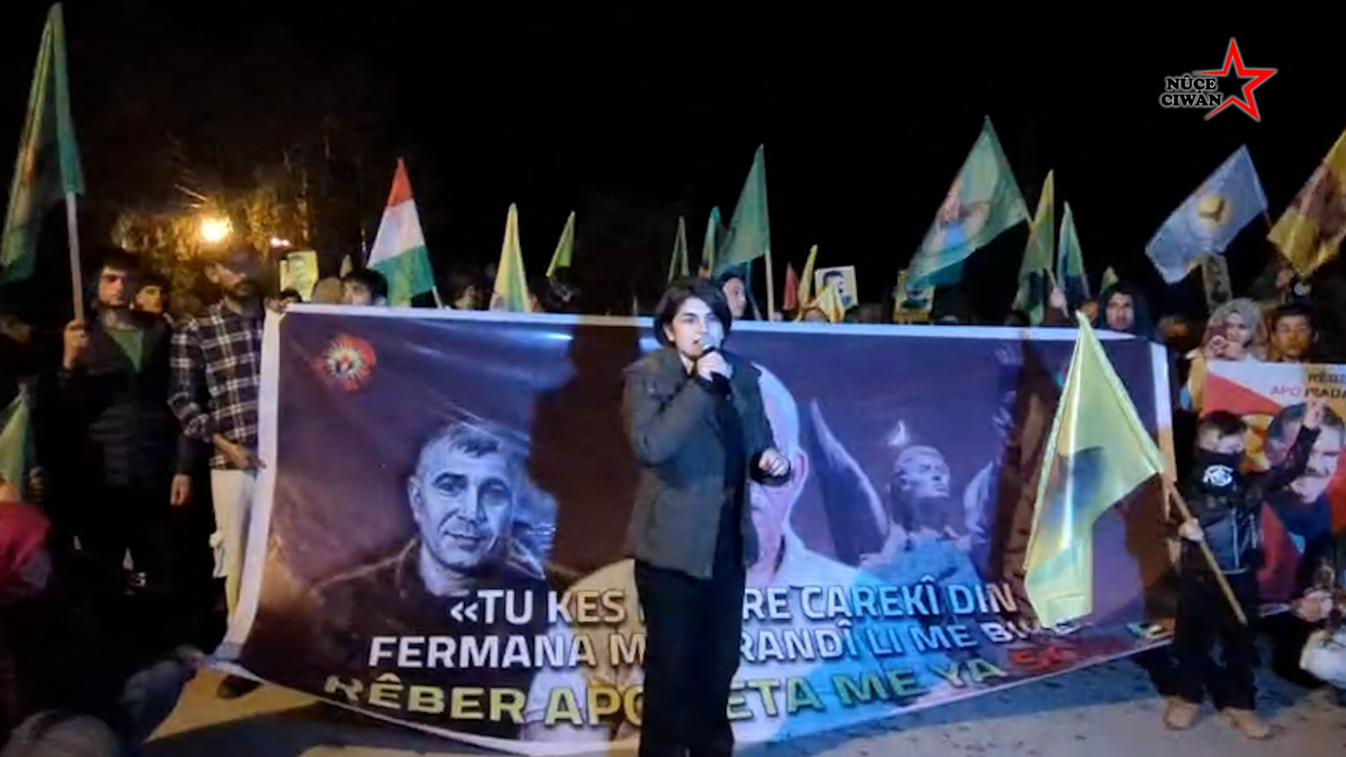Eylem, yapılan açıklamanın ardından “Bijî Serok Apo” ve “Bê Serok jiyan nabe” sloganlarıyla son buldu.