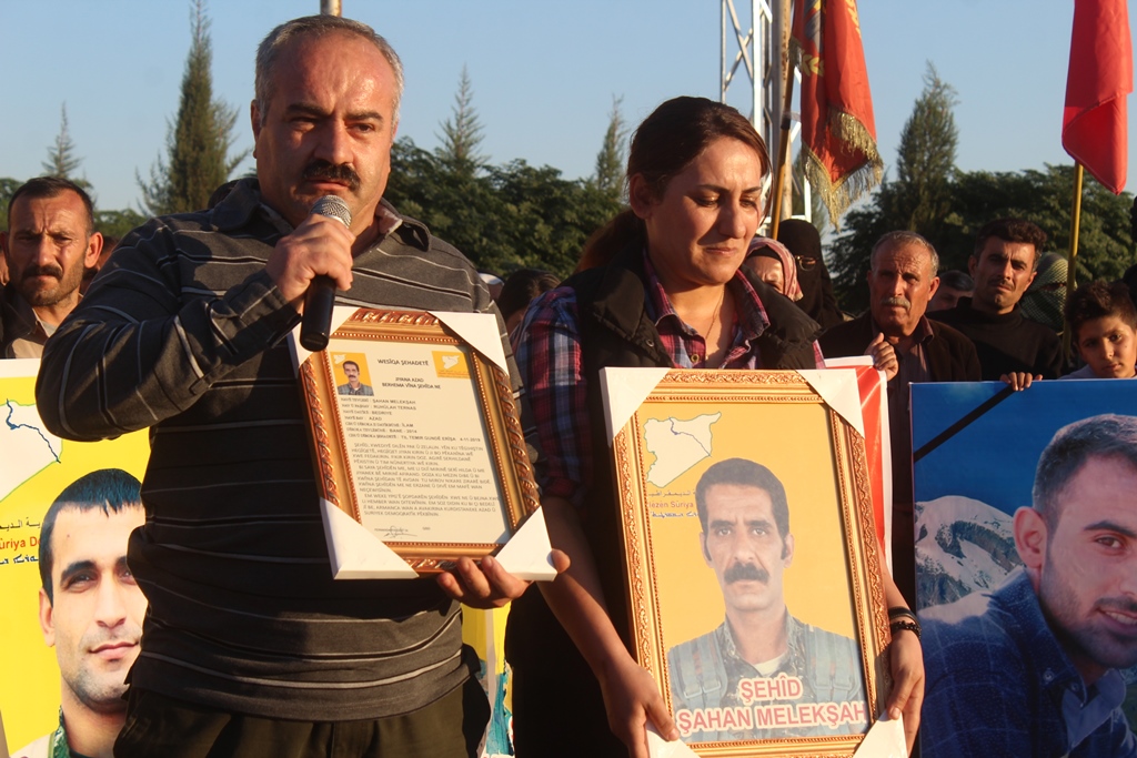 Saygı duruşu ile başlayan törende Özerk Yönetim adına konuşan Heyfa Erebo, şehit ailelerine ve tüm Kuzeydoğu Suriye halklarına başsağlığı diledi. Onur Direnişi’nin bütün dünyada ses getirdiğine dikkat çeken Heyfa, Türk devletinin vahşi uygulamalarına karşın dünyanın sessizliğini kınadı.