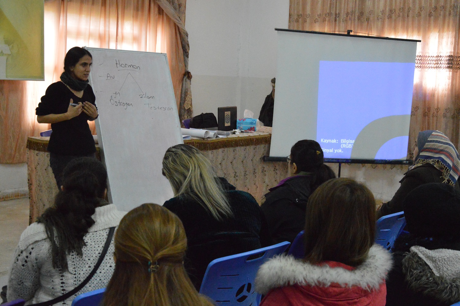 Saat 9:00’da başlayan seminere çok sayıda öğretmen katıldı. Yaklaşık 3 saat süren seminer de kadınlar bölgedeki namus cinayetleri konusu ele alındı.