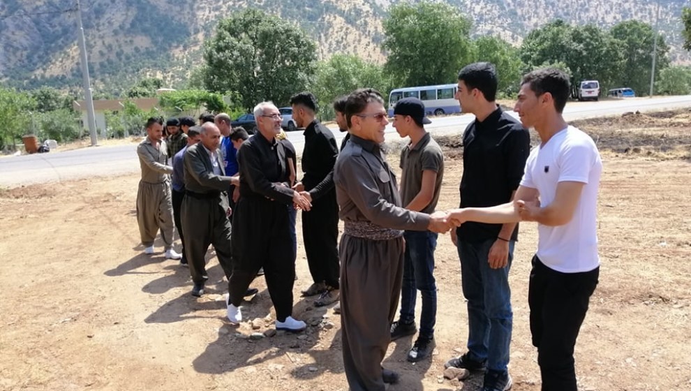 Dêrin pêşmergeleri canlı kalkan eylemindeki gençleri ziyaret etti