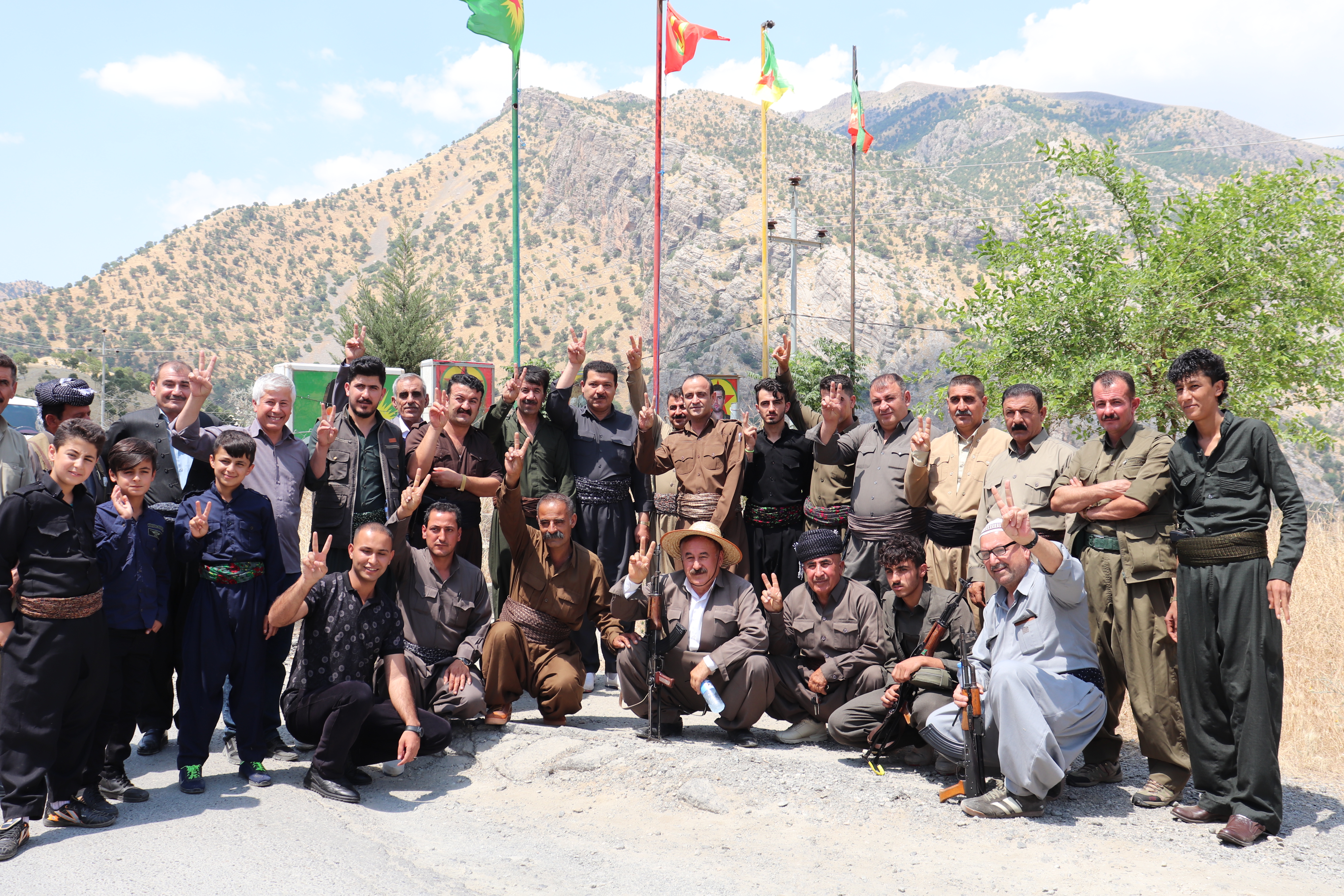 QENDİL – İşgalci Türk devletinin Bradost ve Xakurê alanlarından başlattığı Başûrê Kurdistan’a yönelik işgal saldırılarına karşı Başur halkından gelen tepkiler giderek yükselirken, Dêrin peşmergeleri de harekete geçti. Bir grup Dêrin peşmergesi, işgalci Türk devletinin Bradost bölgesi ve Xakurkê’den başlatığı işgal saldırılarına Başur hükümetinin sessizliğine tepki göstermek için Kandil’de peşmerge kıyafetleri ve silahlarıyla bir açıklama yaptı. Qendîl’de canlı kalkan eyleminde olan gençler tarafından karşılaşan heyet burada gençleri de ziyaret etti.