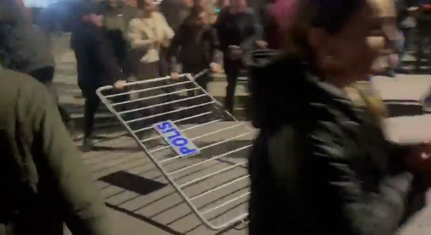 Dêrsim Belediyesi’ne kayyım atanmasının ardından belediye önüne gelen halkın sayısı giderek artıyor. Belediye önüne yüzlerce faşist polisle kurulan barikat halkın direnişi ile kaldırıldı. Halk polis bariyerlerini yıkıp, bariyer demirlerini bir köşeye fırlattı.
