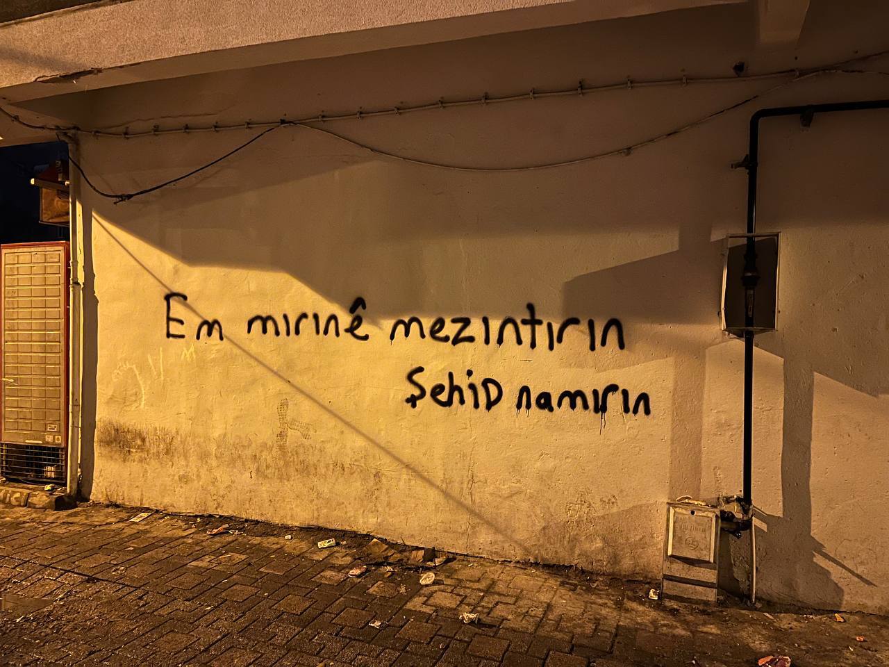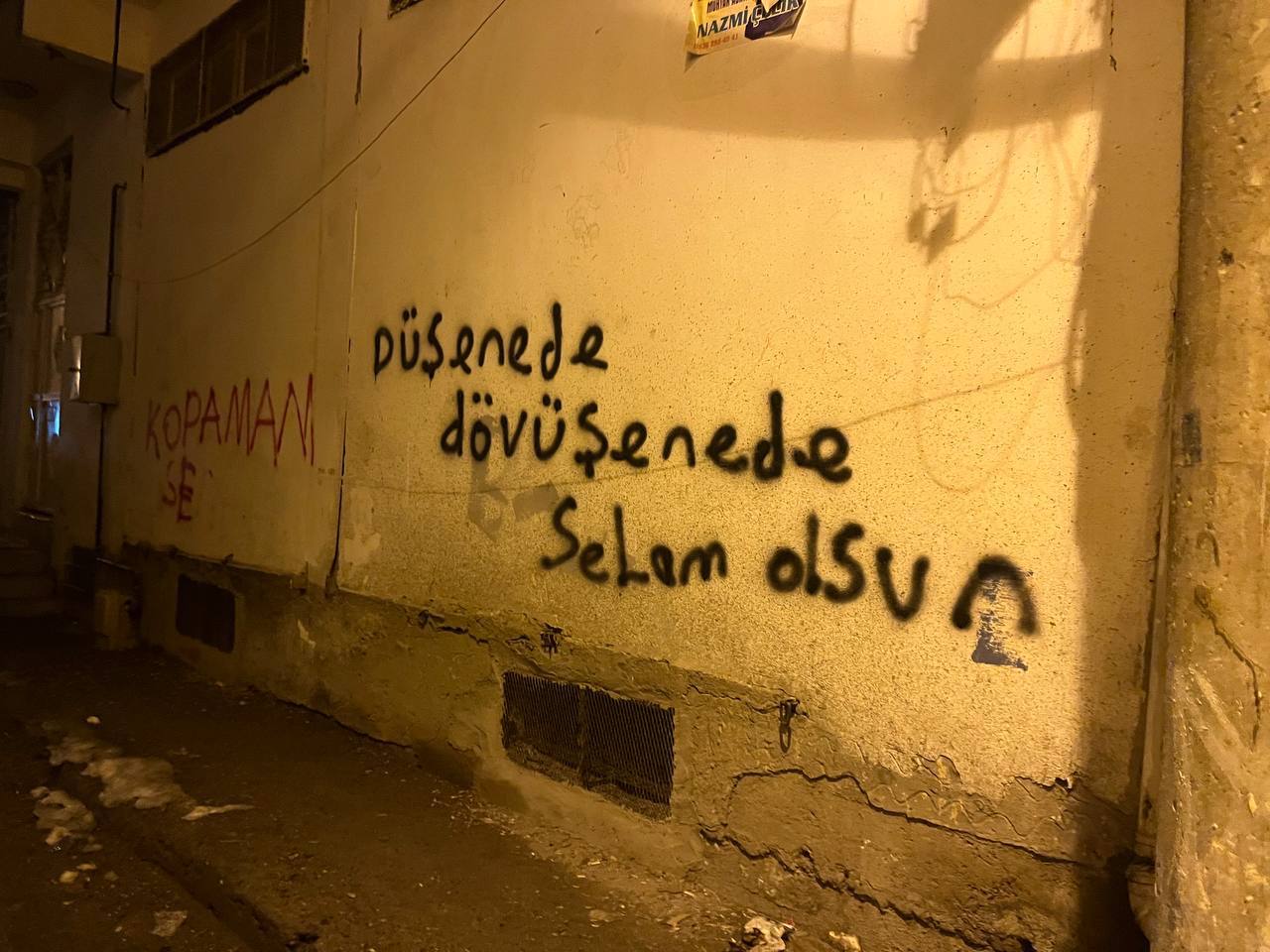 HABER MERKEZİ – Dersim ve Amed’de Yurtsever gençler ve öğrenciler, HTŞ ve Türk devletine bağlı çetelerin Halep’e ve Rojava’ya dönük katliam saldırılarını, şehrin bir çok noktasında yazılama çalışması gerçekleştirerek protesto etti.