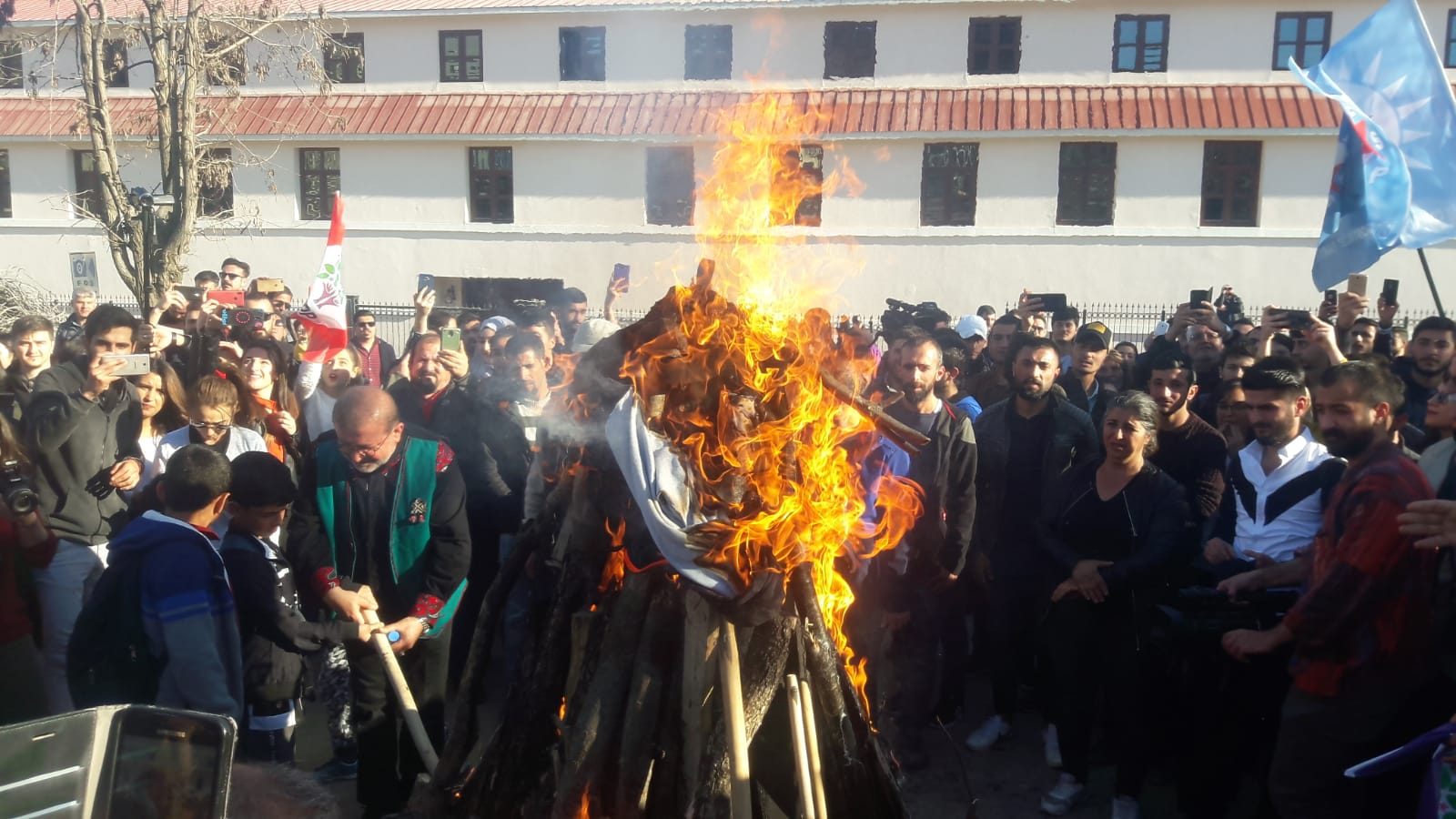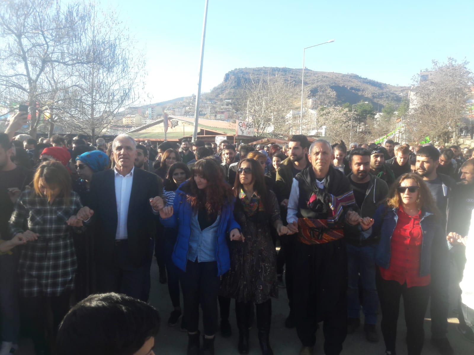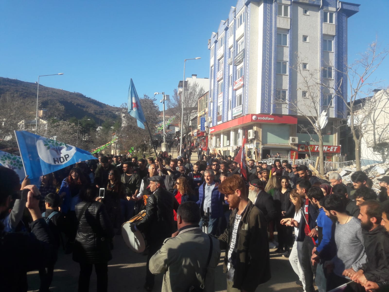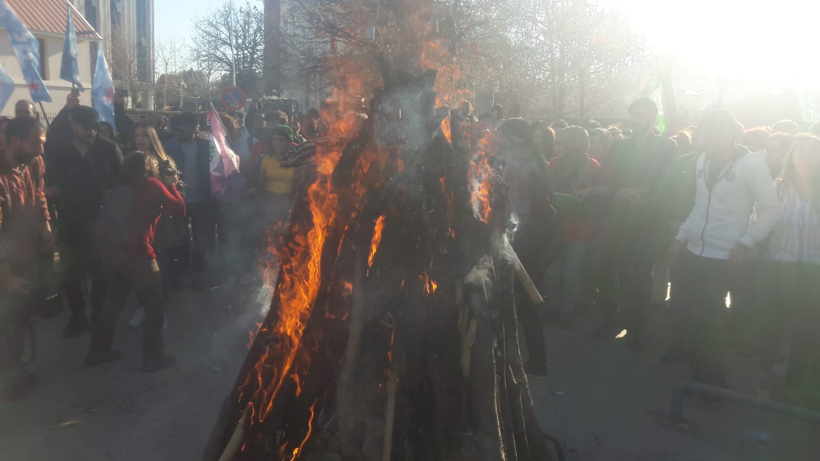 DERSÎM – Dersîm’de Devrimci Güç Birliği’nin Seyit Rıza Meydanı’nda düzenlediği Newroz Etkinliği için alanda toplanan kitlenin, polis tarafından “bomba araması yapılacağı” için alandan çıkartılmasının ardından başladı. Newroz, yakılan ateş ile büyük bir çoşku ile başladı. Gençlerin çoğunlukta olduğu dikkat çekerken, sürekli olarak açlık grevleri direnişçilerine destek sloganlarının atıldığı gözlemlendi.