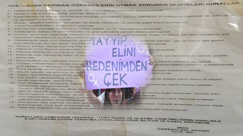 MÊRDÎN- Mêrdîn Artuklu Üniversitesi’nde okuyan kadın öğrencilerin kaldığı Mêrdîn Kredi Yurtlar Kurumu (KYK) Kız Öğrenci Yurdu yönetiminin “Yurt İçi Kurallar” adıyla yurdun girişine astığı yazıda “Öğrenciler şort ve pijama gibi uygunsuz kıyafetler ile odaları dışında yurt alanında görülmeyecek” ifadesi yer aldı. Duruma tepki gösteren öğrenci kadınlar, yasaklar çizelgesini kendi sosyal medya hesaplarından paylaşarak kadın kurumlarına çağrıda bulundu.