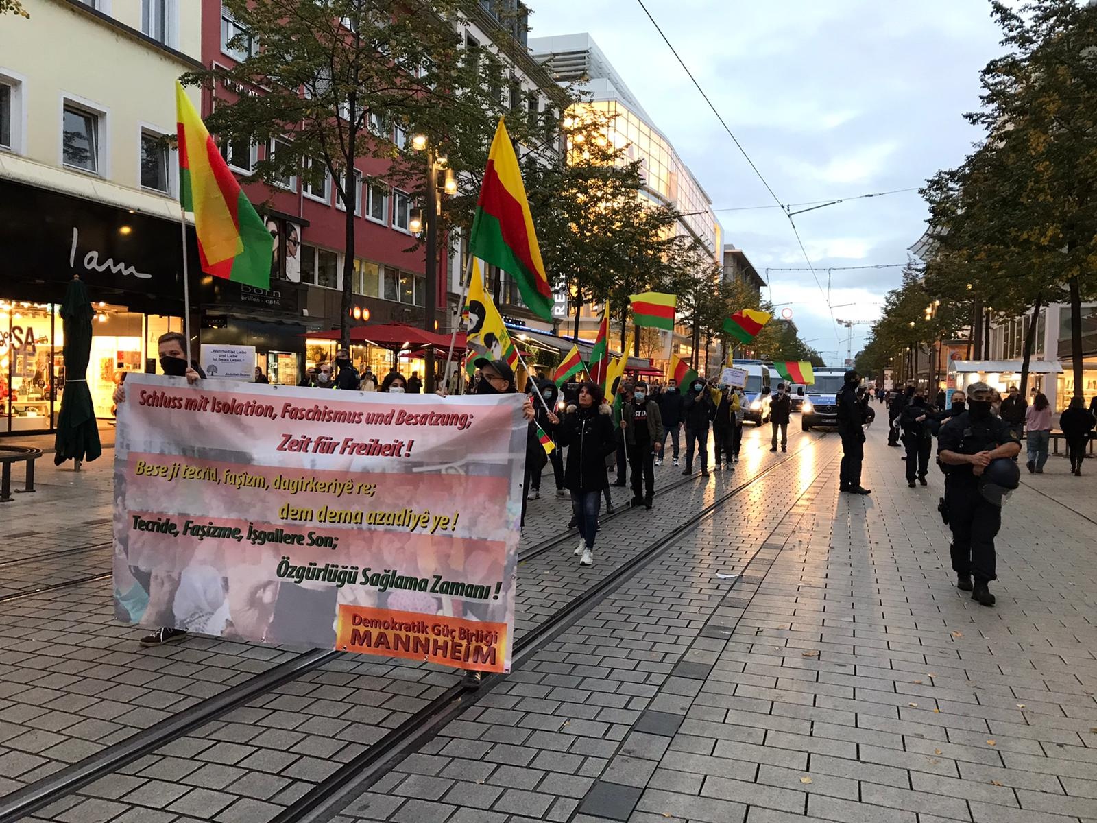 Marşlarla devam eden yürüyüş, yaklaşık 1 saatin sonunda Mannheim tren garında yapılan kısa bir miting ile son buldu. Burada yapılan açıklamada, Kürt gençlerinin Önder Öcalan’sız bir yaşamı kabul etmedikleri ve O’nun fiziki özgürlüğü sağlanana kadar sürekli eylemsellik halinde olacakları belirtildi. Eylem, 10 Ekim dünya Öcalan’a Özgürlük günü yapılacak eylemlere kitlesel katılım çağrıları ile son buldu.