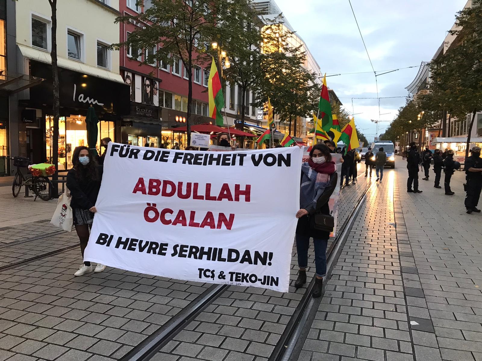 Halklar Önderi Abdullah Öcalan’a dönük 9 Ekim komplosu, Tevgera Ciwanên Şoreşger ve Jinên Ciwan ên Têkoşer’in çağrısıyla Almanya’nın Mannheim kentinde düzenlenen bir yürüyüş ile protesto edildi.
