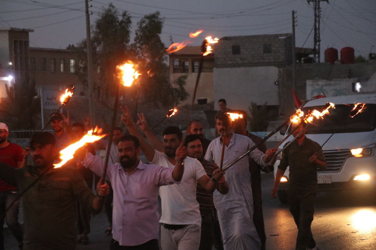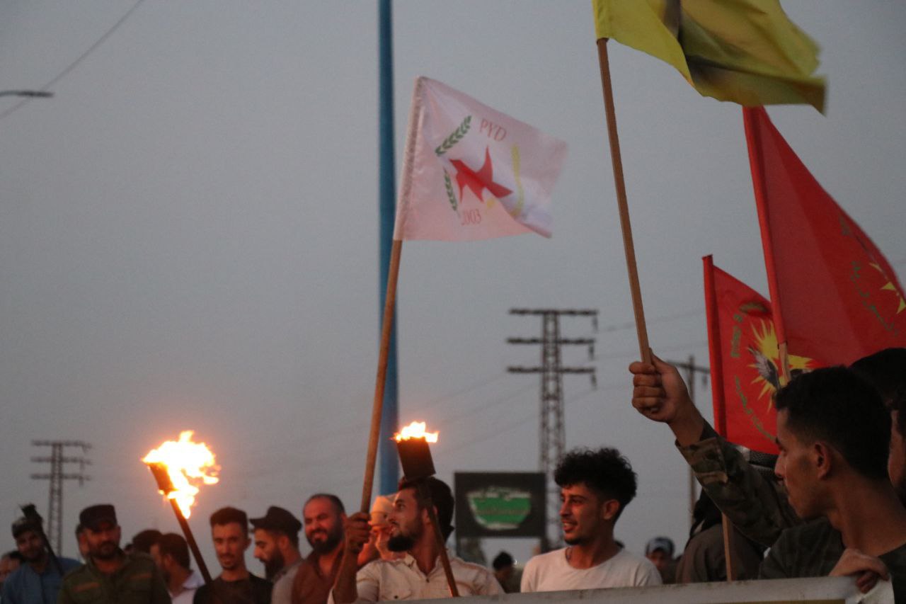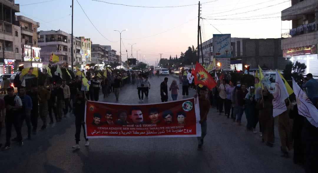 Bugün akşam saatlerinde gençler meşaleyle 14 Temmuz şehitlerini andı. Yürüyüşte yüzlerce genç, “14 Temmuz ruhuyla 19 Temmuz Devrimi’ni Kazanalım” pankartına katılırken, gençler Şehid Namirin ve Biji Serok APO sloganlarını attı. Yürüyüşte ayrıca işgalci Türk devletinin saldırıları ve PDK ile iş birliği de protesto edildi.