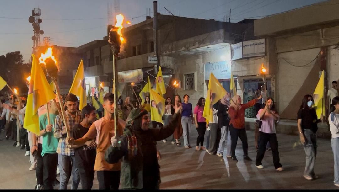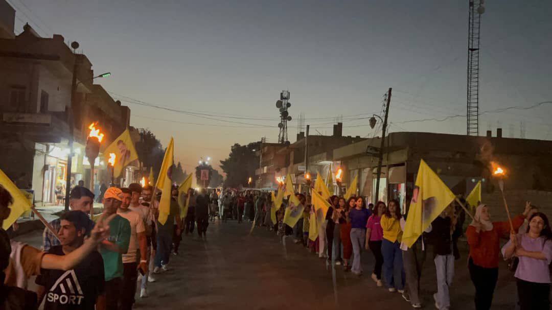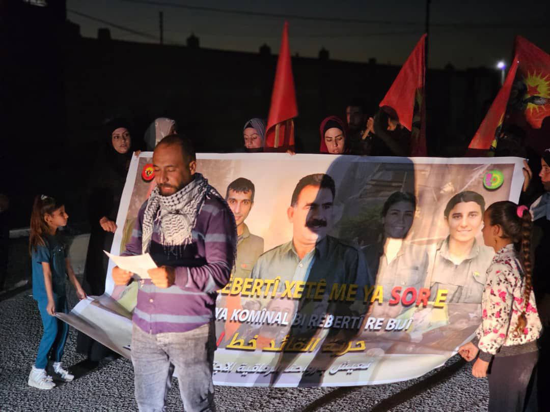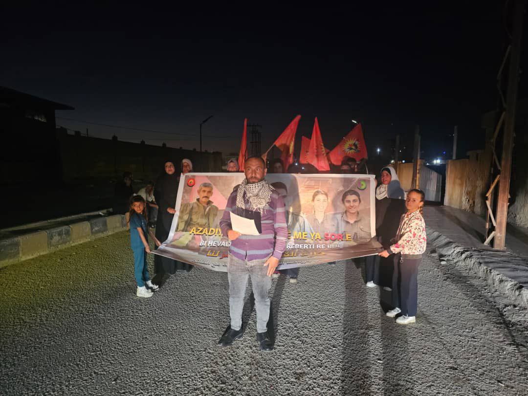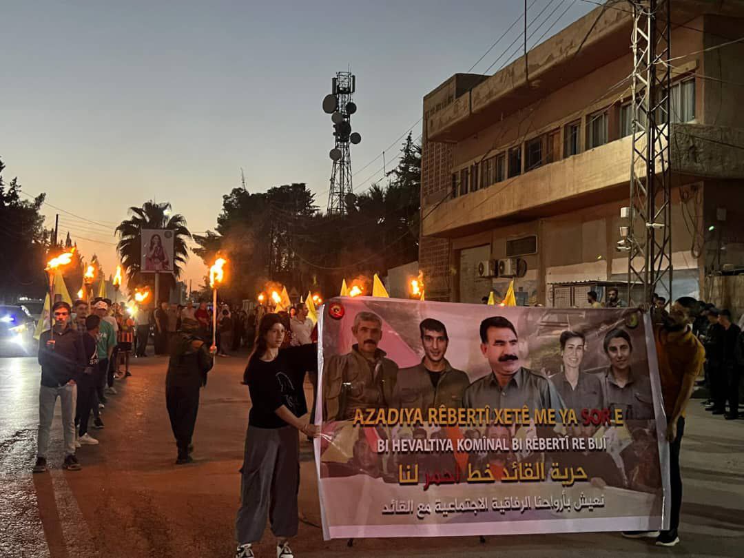 HABER MERKEZİ- Devrimci Gençlik Hareketi, Önder APO’ya yönelik 9 Ekim uluslararası komplosunun 27’nci yıldönümü dolayısıyla Amudê, Şedadê ve Tirbespiyê kentlerinde meşaleli yürüyüşler düzenledi. “Önder Apo’nun fiziksel özgürlüğü kırmızı çizgimizdir” sloganıyla gerçekleştirilen eyleme onlarca genç katıldı.