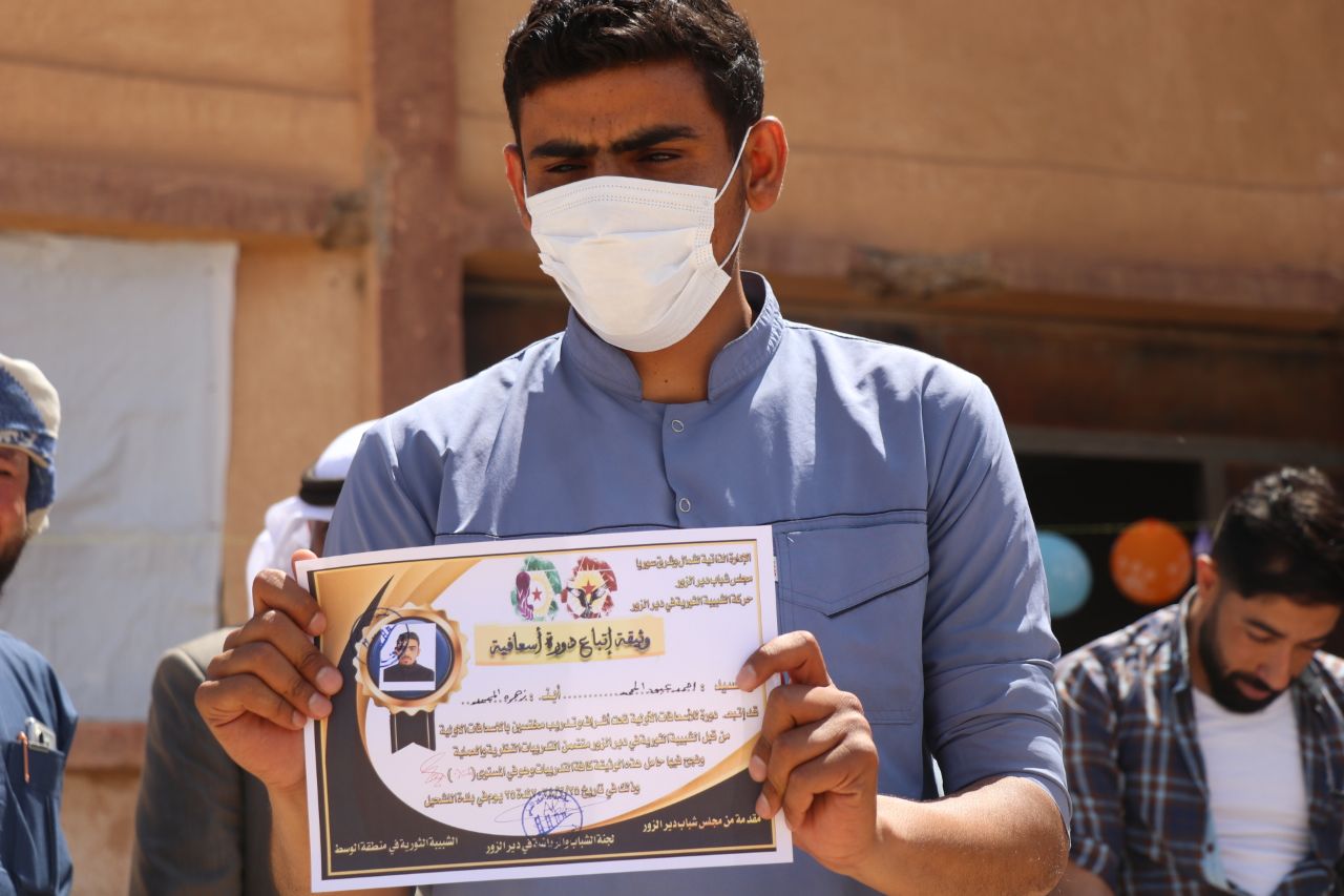DERAZOR – Derezor’daki Devrimci Gençlik Hareketi ve Genç Kadınlar Birliği, Şuhele kasabasında Sağlık Devrelerini Eğitimini tamamladı. Devrelerde 118 Arap genç kadın ve erkek eğitim aldı.