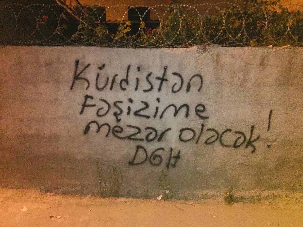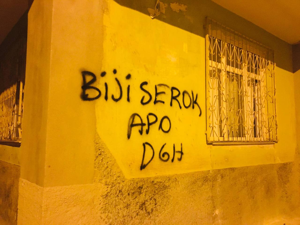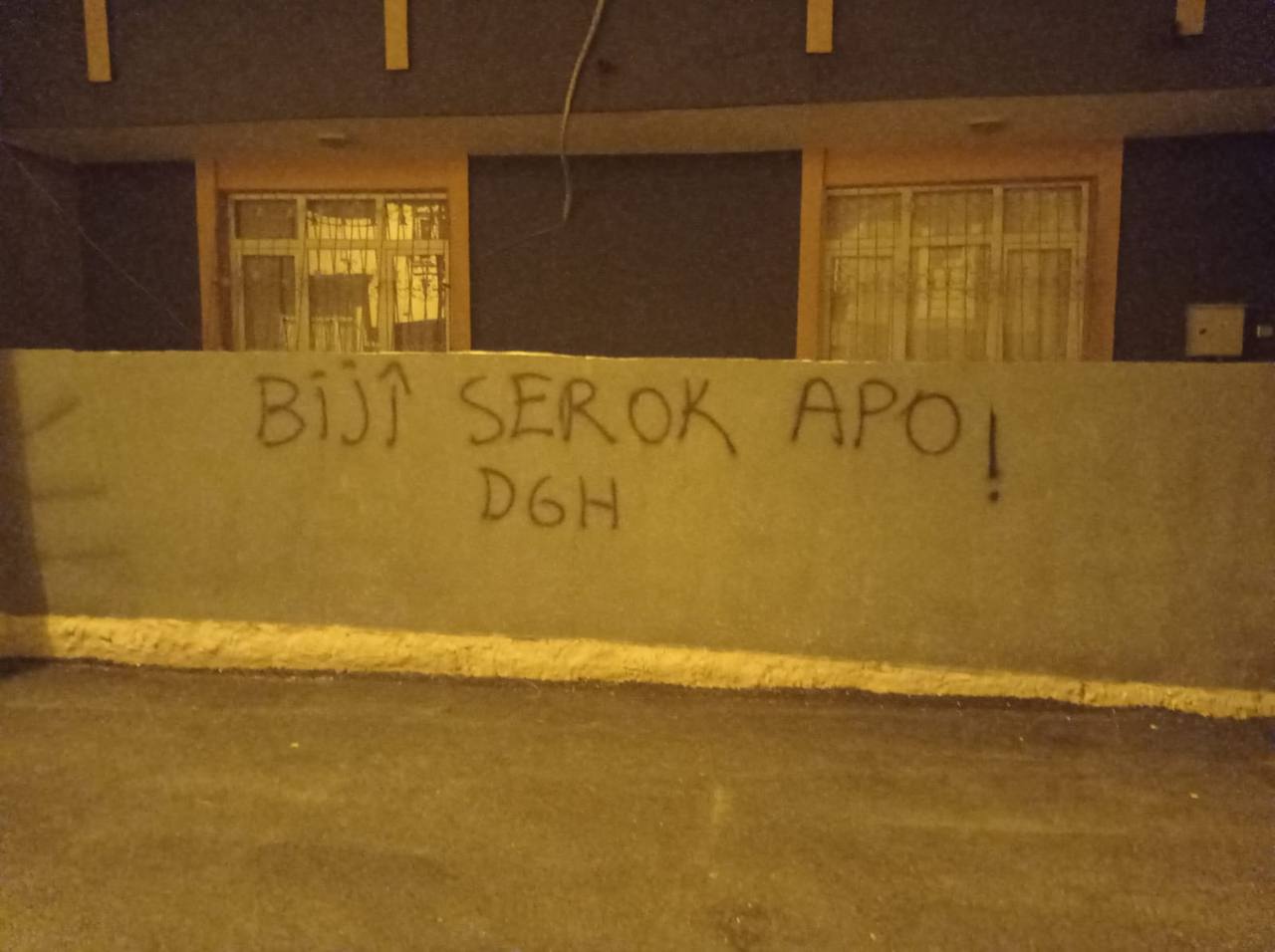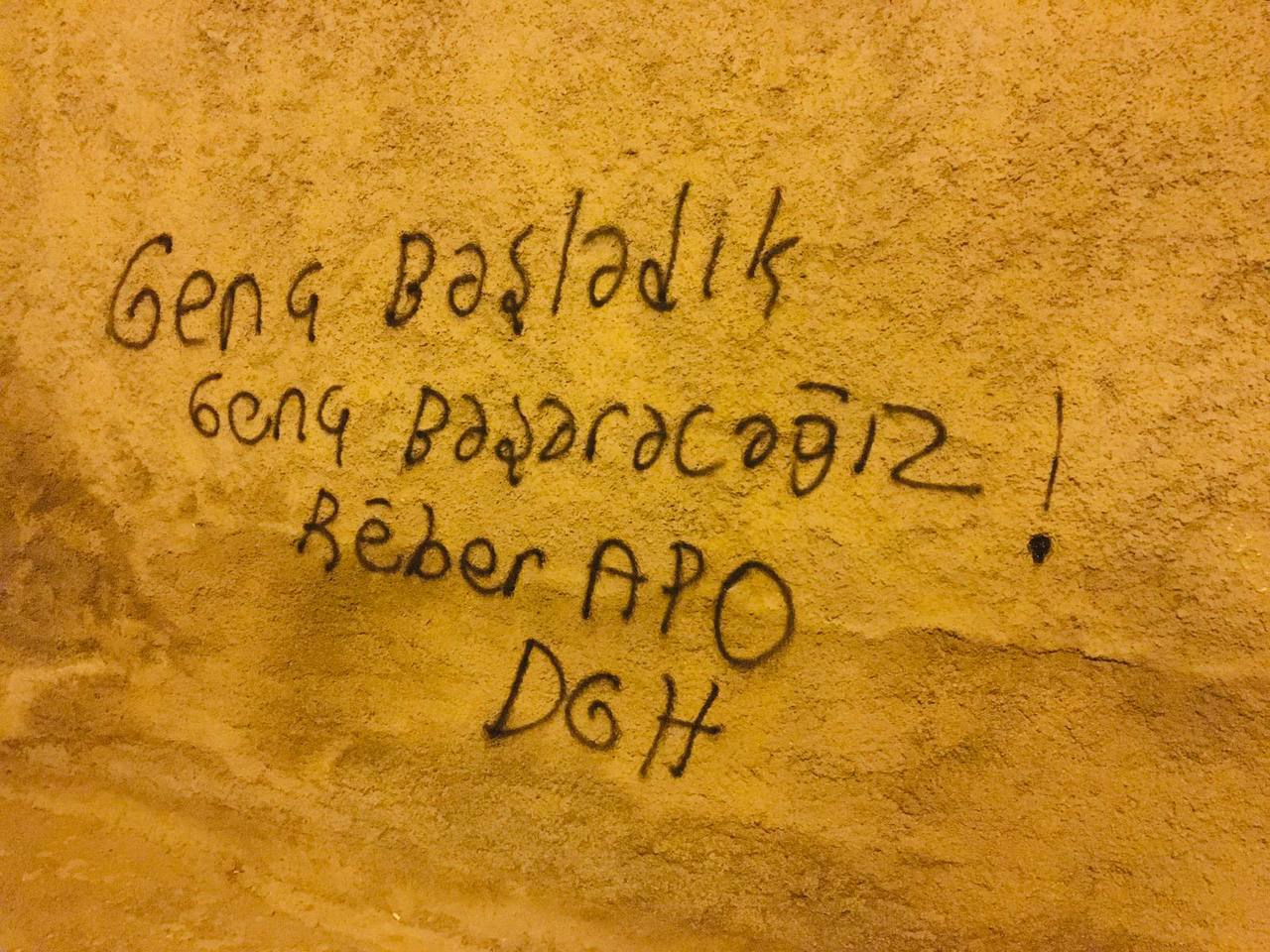ADANA – Devrimci Gençlik Hareketi Şehîd Goran Goyi  Birimi tarafından Adana’nın Seyhan ilçesinde 1 Haziran Atılımı için bir çok sokağa yazılama çalışması yapıldı, ‘Bijî Serok Apo, PKK Halktır Halk Burada, Bijî Berxwedana Zapê, PKK dağlarda DGH Şehirde, Genç Başladık Genç Başaracağız, Kurdistan Faşizme Mezar Olacak, 1 Haziran Atılımı Kutlu Olsun’ yazılamaları şehrin bir çok yerine yazılırken birim, yazılama çalışmasına ilişkin yaptığı açıklama da şunları belirtti;