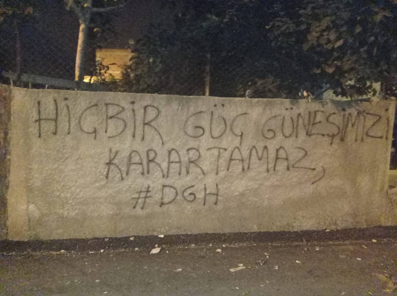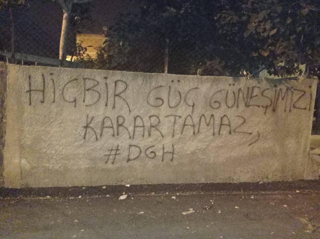 “DGH Şehit Goran Goyi birimimiz, Adana’nın Seyhan ilçesinde bir çok sokakta yazılama çalışması gerçekleştirmiştir. Çalışma, 1 Haziran Atılımı için yapılırken, bugün Zap, Avaşîn ve Metîna’da 1 Haziran Atılımı ruhuyla direnen Kurdistan Özgürlük Gerillas’nın şehirlerdeki sesi olmaya devam edeceğiz.” denildi.