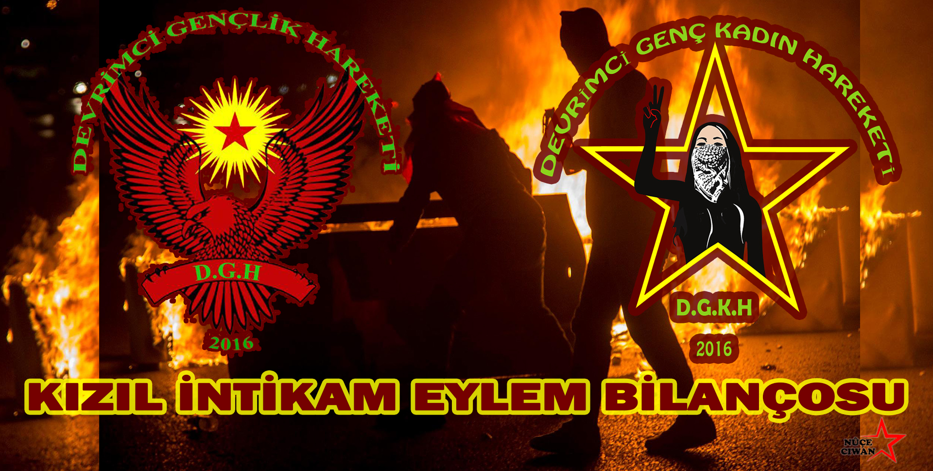 Devrimci Gençlik Hareketi (DGH) ve Devrimci Genç Kadın Hareketi (DGK-H) olarak ilk başta Önderliğimiz’e uygulanan uluslararası komployu boşa çıkartıp Önderliğimizi özgürleştireceğimizin sözünü veriyoruz. Tüm dünyada büyük bir destekle gelişen Özgürlüğü Sağlama Zamanı hamlesini, DGH ve DGK-H olarak başlattığımız Kızıl İntikam hamlesiyle zafere taşıyacağımıza ve Önderliğimizi özgürleştireceğimizi bir kez daha belirtiyoruz. Kızıl İntikam hamlemizin öfkesi komployu yenilgiye uğratacak ve düşmana nefes aldırtmayacağız.