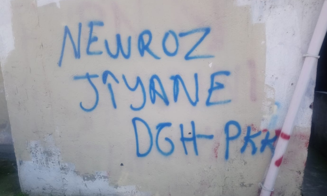 DGH Birimleri, “Bijî Newroz DGH “, “Gençlik Apo’nun fedaisidir” “Newroz Jiyanê” ve “Önderliksiz bir yaşamı size zindan ederiz” yazılamalarını yazdı.
