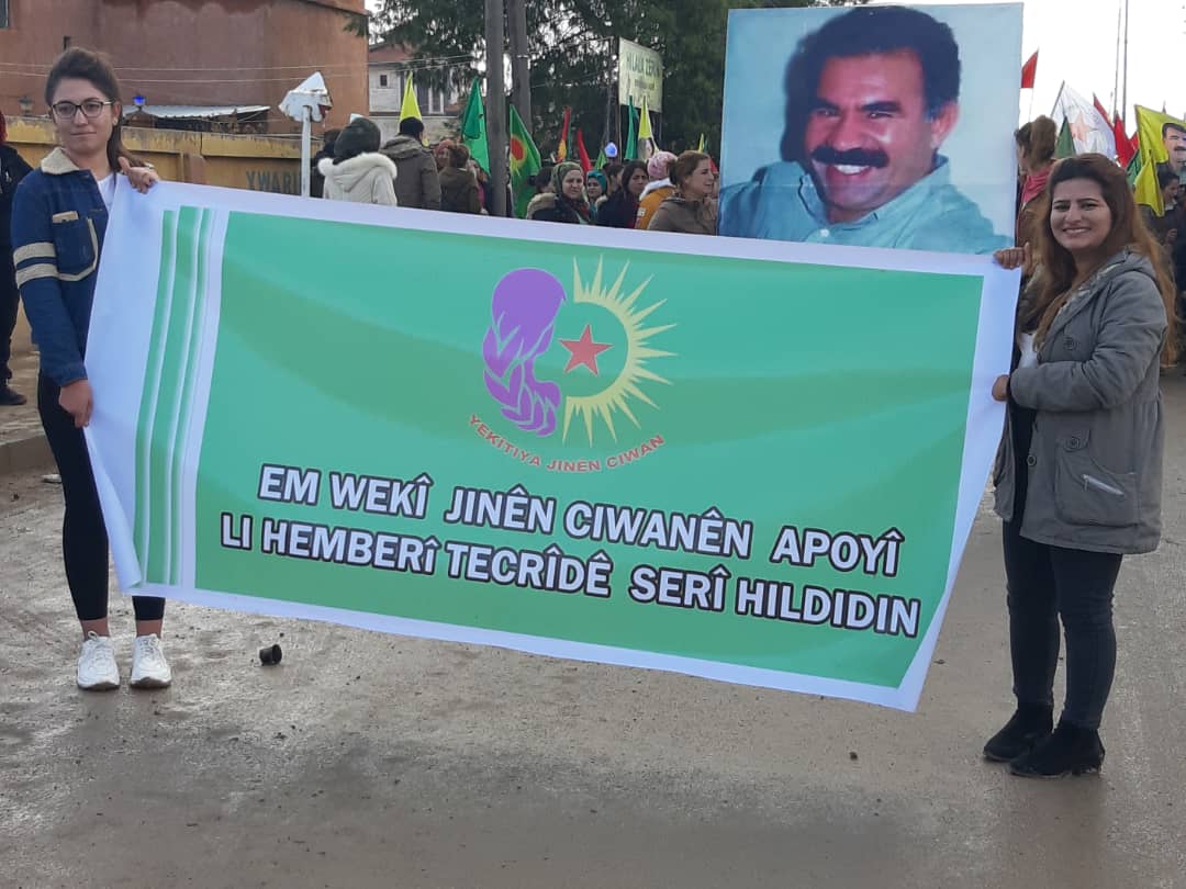 Halklar Önderi Abdullah Öcalan üzerindeki tecride karşı Rojava'nın Dirbêsiyê ilçesinde gençlik öncülüğünde bir yürüyüş eylemi gerçekleştirildi.