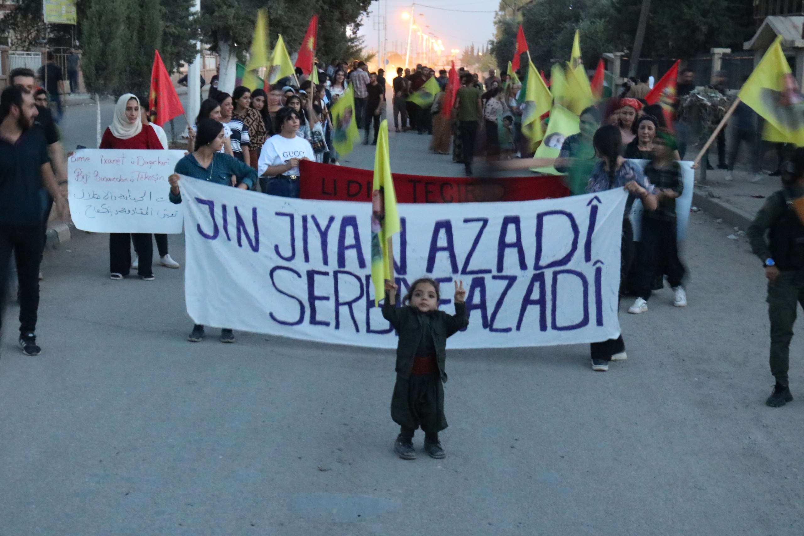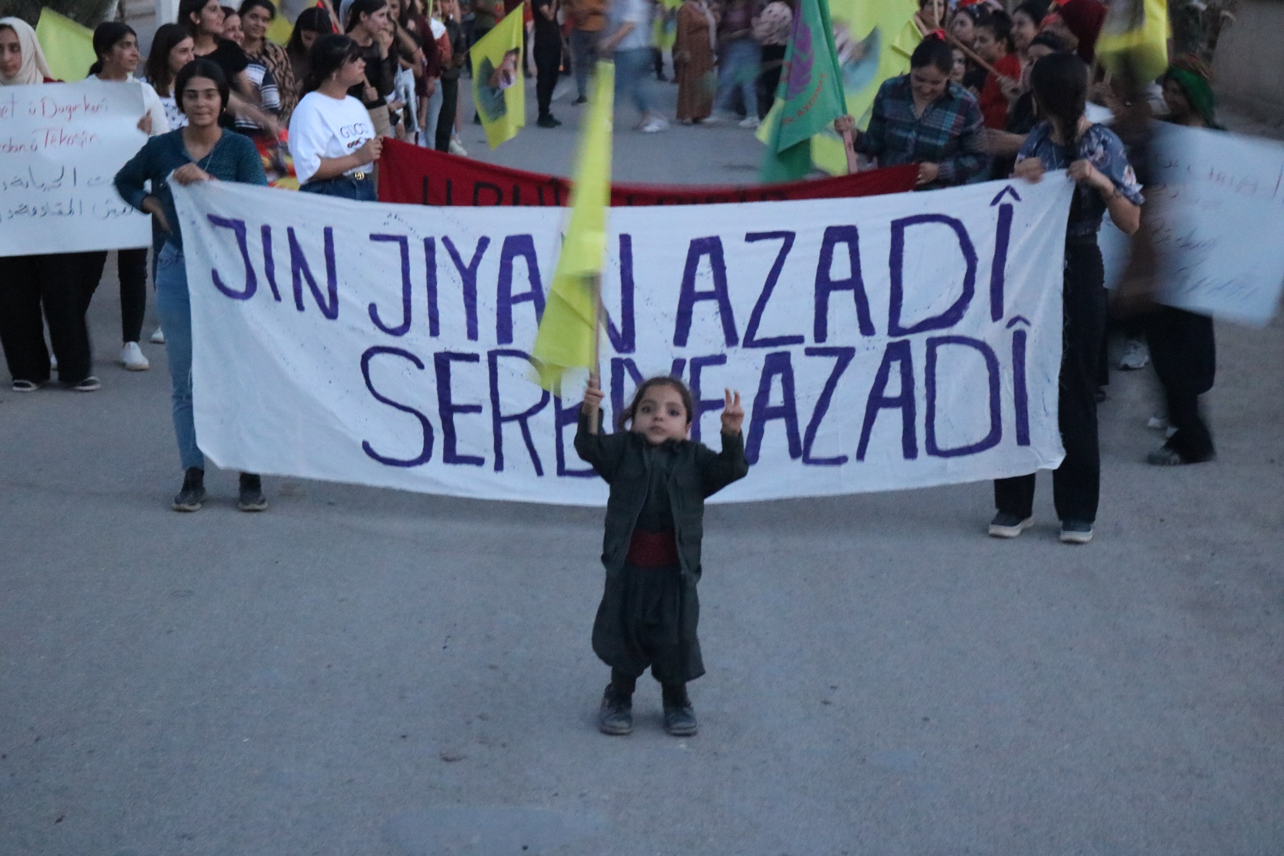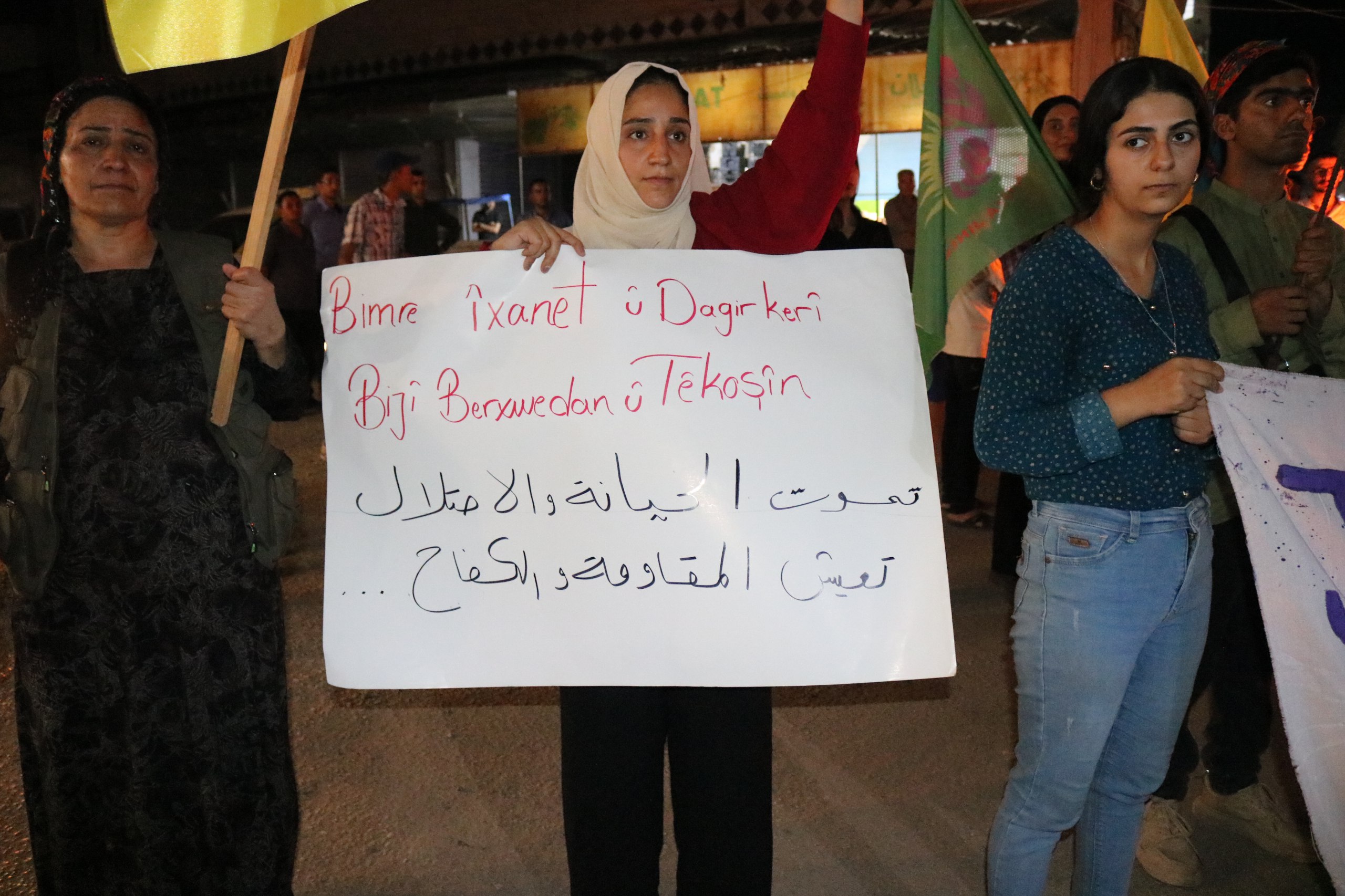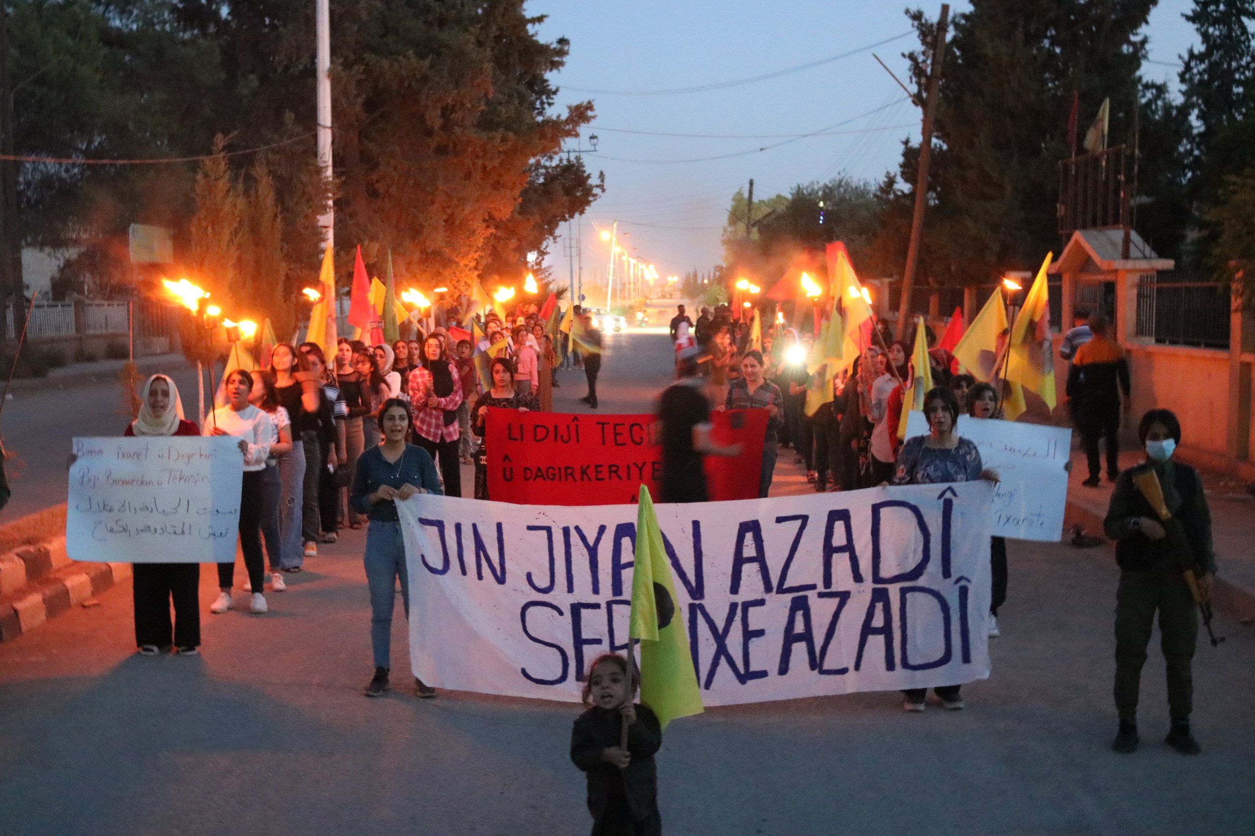 DIRBESIYÊ- Genç Kadınlar Birliği öncülüğünde “Jin Jiyan Azadî Serbixe Azadî” kampanyası çerçevesinde Dirbesiyê’de, Barzanî’nin ihanetine ve işbirliğine karşı meşaleli yürüyüş düzenlendi.