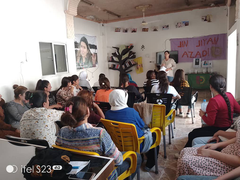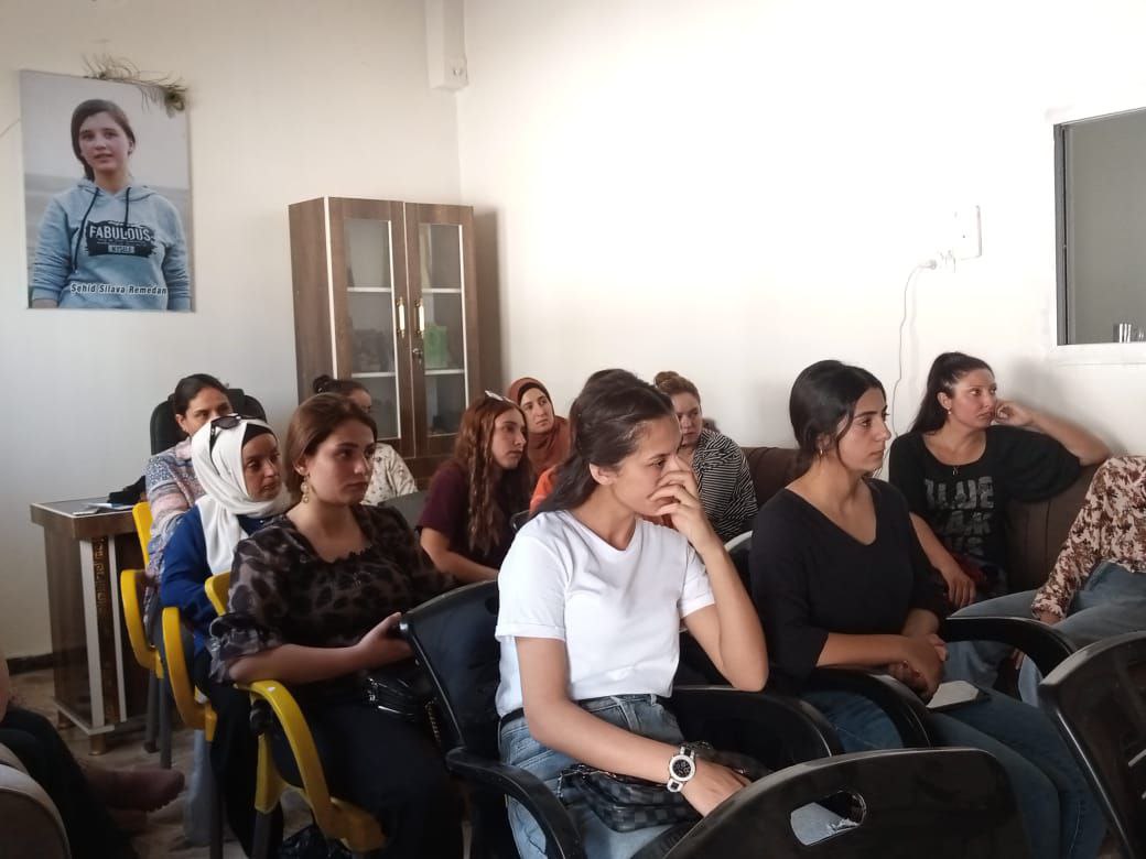 DİRBÊSİYE – Genç Kadınlar Birliği Dirbêsiye’de kadına yönelik taciz, şiddet ve cinayetlerle ilgili atölye düzenledi.